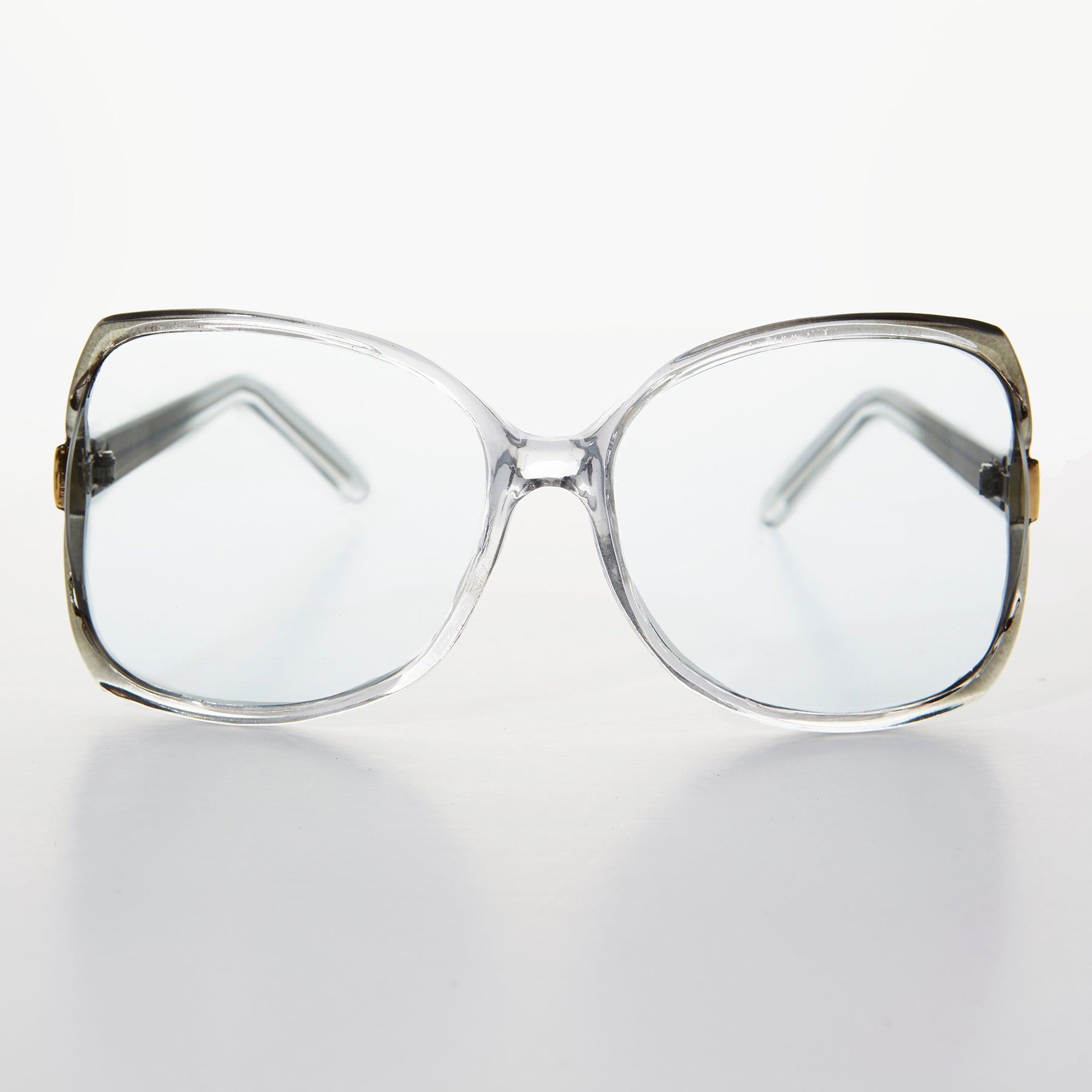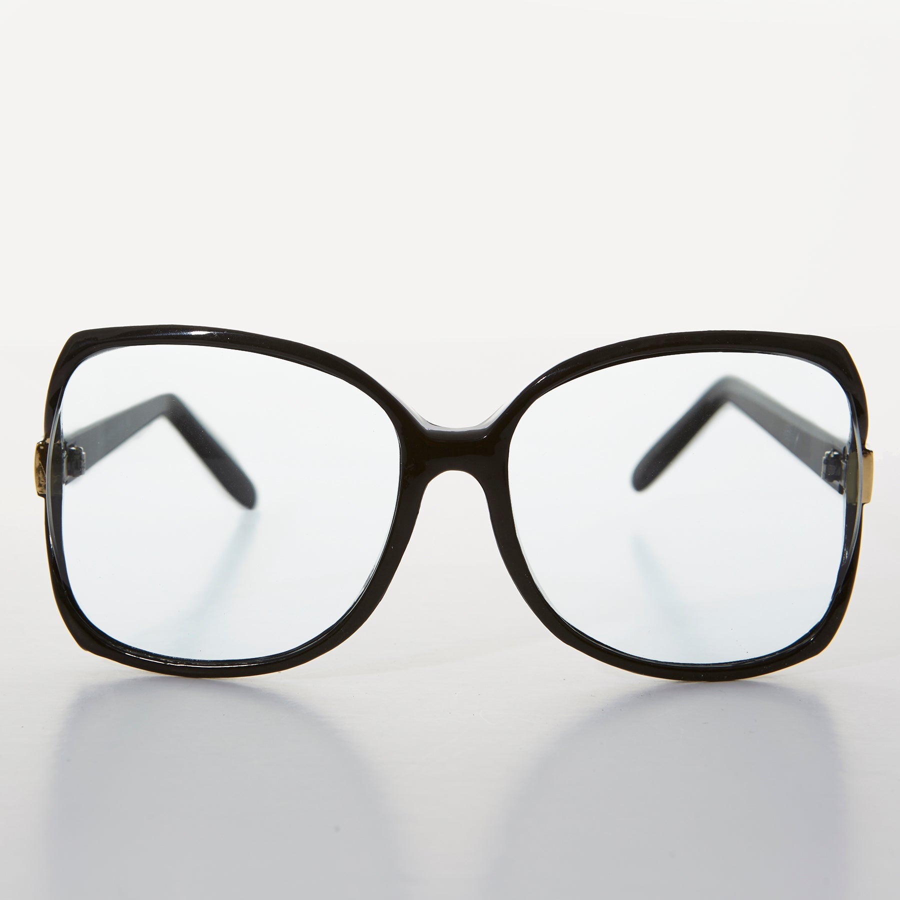 You simply can’t go wrong with these oversized vintage reading glasses with metal embellished French cut lenses. Optical quality frame with wire core temples. 1980s new old stock.