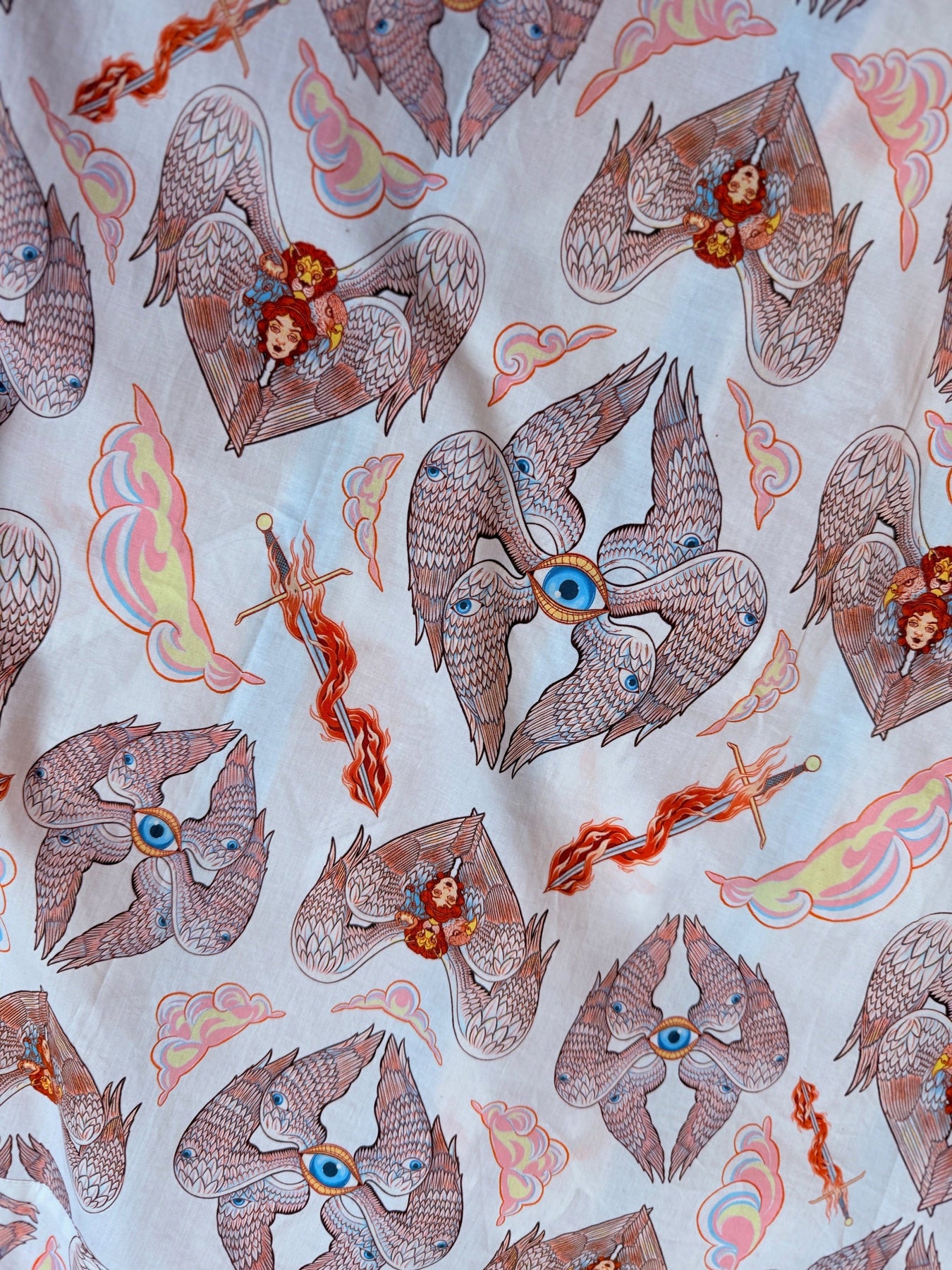 The new Men's Heavenly Bodies Cocktail Shirt is anything but scary. We're more than a little obsessed with this artwork, created exclusively for Wax Poetic by Philadelphia illustrator Kaitlin O'Donnell! This 100% cotton shirt is breathable, with bright blue trim and buttons, pockets, and a digital print that ensures longevity! This style is meant to be slightly oversized, if you'd like it to be more fitted we recommend sizing down.