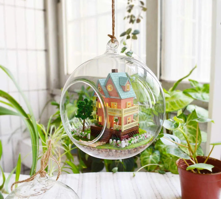 Immerse yourself in the joy of crafting with this miniature cottage roombox Kit. This delightful project allows you to assemble a charming two-story cottage, complete with intricate furniture, cozy details, and a lush outdoor setting. Encased in a beautiful glass dome, this roombox brings a touch of whimsy and warmth to any space. Ideal for hobbyists and DIY enthusiasts, it’s a perfect way to showcase your creativity and enjoy a relaxing pastime.