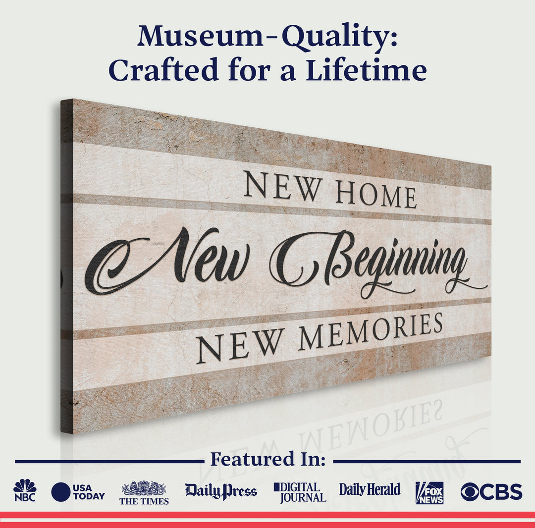 A brand-new house is a blank canvas, a fresh start, and a new chapter. It's an opportunity to make a new beginning, new memories, and an impact on the world. What better way to mark the start of this new chapter in your life than with a lovely canvas print of "New Home, New Beginning"? Our New Home, New Beginning sign is ideal for giving your new room a unique touch. This contemporary yet rustic New Home, New Beginning wall art is made of high-quality canvas.