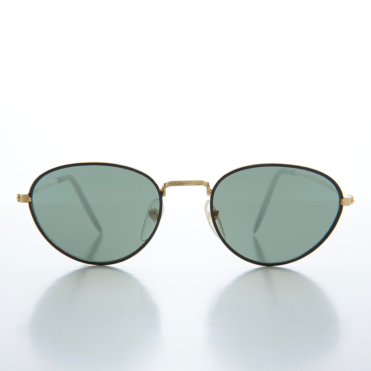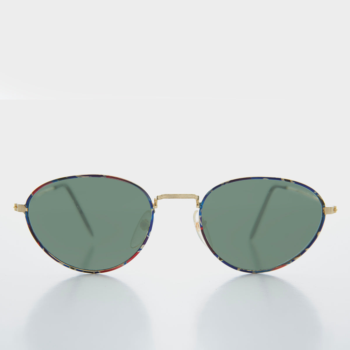 These oval sunglasses feature a cute gold frame with painted color patterns. Recommended for small-med face shapes. New old stock. Never worn. Great condition. UV protection.