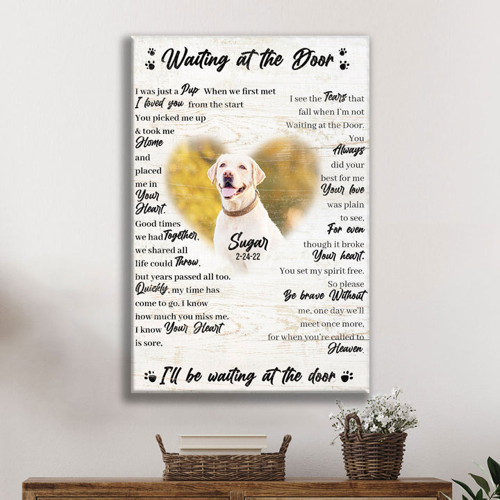 Elevate the warmth of your home with this Custom Pet Waiting at the Door canvas wall art featuring your adorable pet. This Custom Pet Waiting at the Door wall art is like your pet's message to you, making it an excellent choice for the receiving area or any other room in the home.