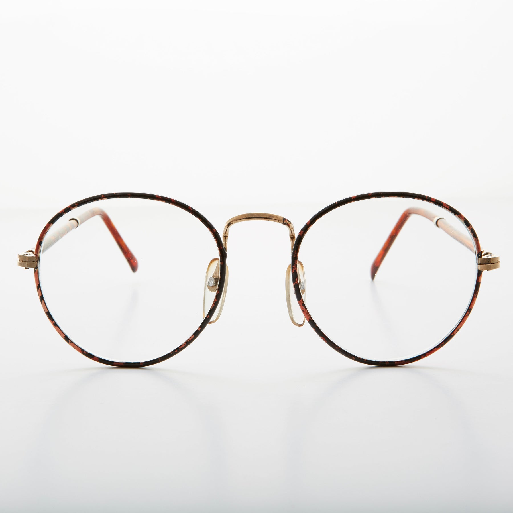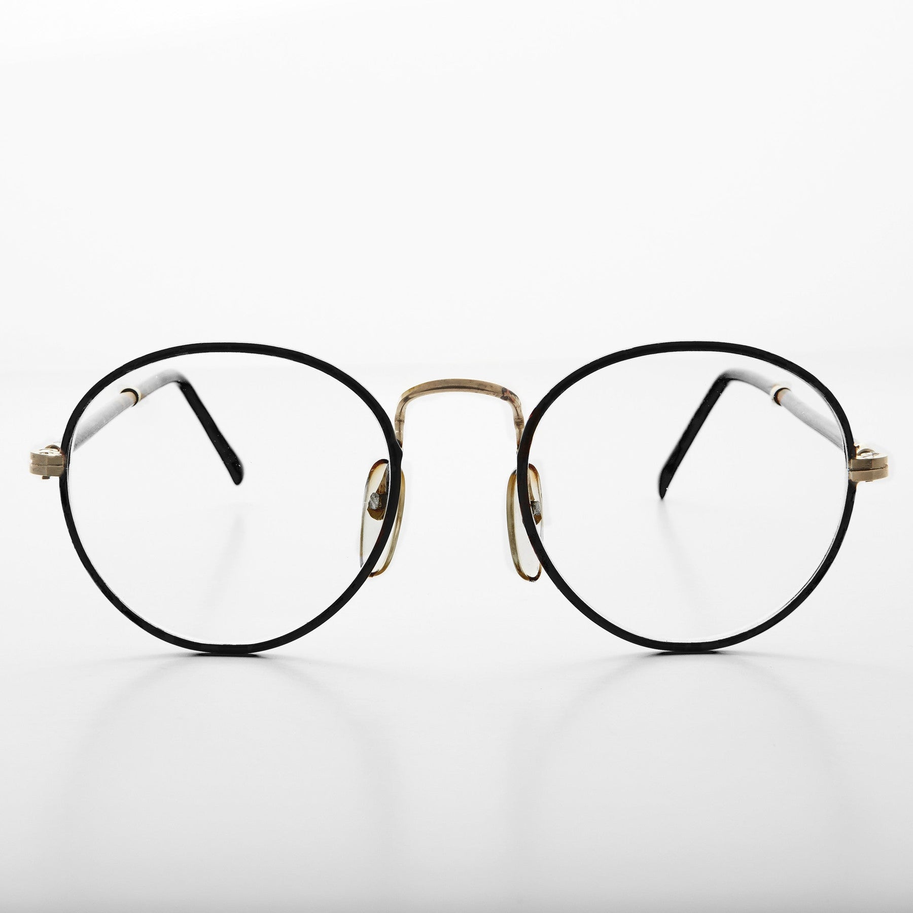 A smart and distinguished frame with clear optical quality ground and polished glass lenses. This eye-catching eyeglass has striking tube temples with rare metal cylinder embellishments. Attractive gold frame wrapped in a brown tortoiseshell or black casing.