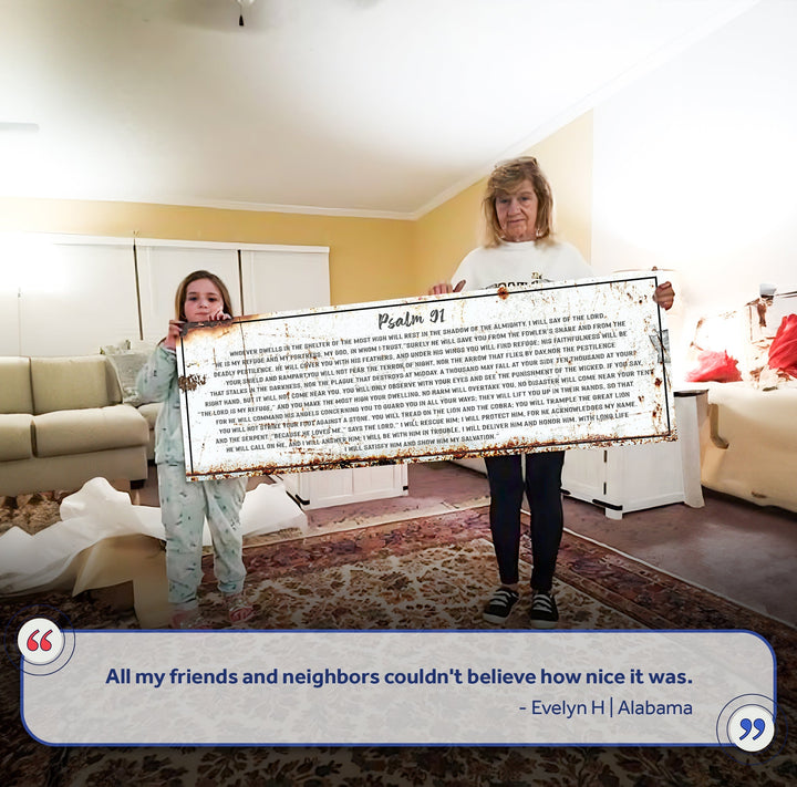 Bring this inspirational piece into your home and let the comforting words of Psalm 91 uplift everyone who enters.