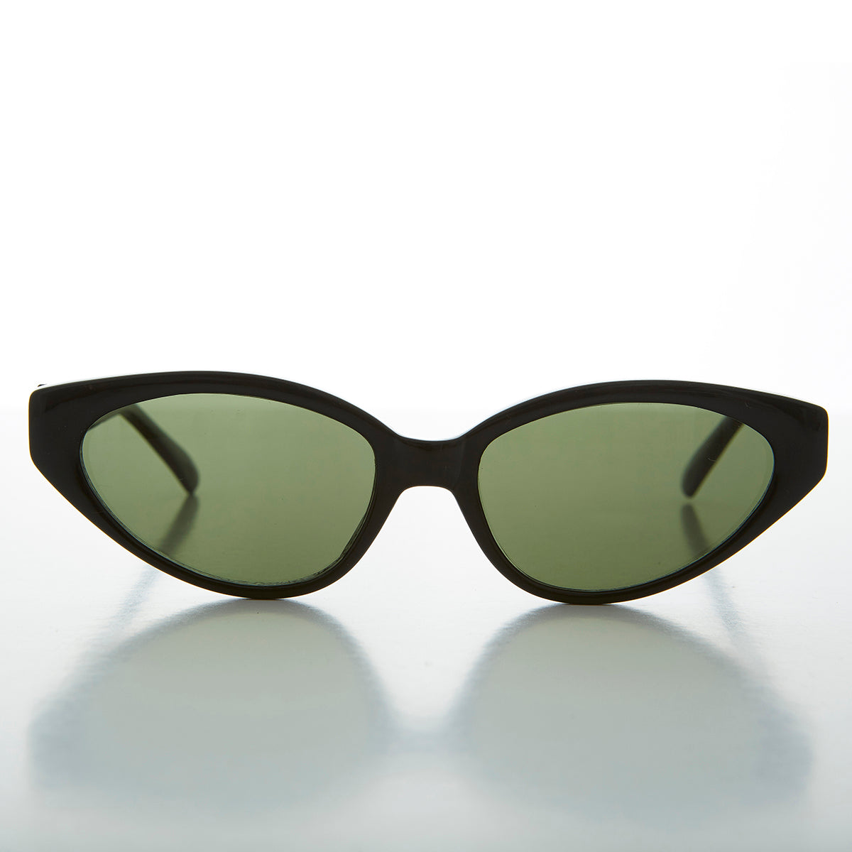 This beautiful sunglass features high pointed temples creating an elegant cat eye silhouette. Made in the 80s from quality acetate with metal hinges and optical wire core temples. Optical quality frame.