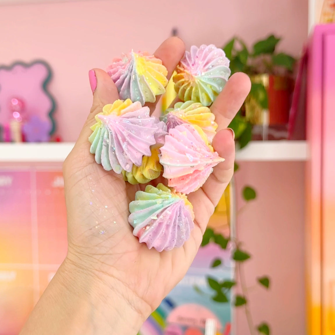 Add a pop of color to your fridge or home office with these cute fake meringue icing magnets. Each set comes with 6 magnets. Perfect for displaying photos of friends or for making your own inspiration board.