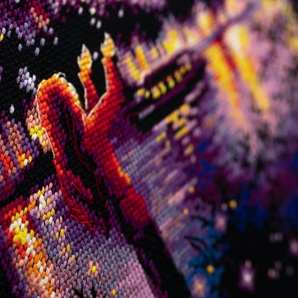 Kit contains: Fabric Zweigart Aida 14 (black), Threads: mouline DMC, Number of Colors:25. Embroidery instructions in English, German, French and Spanish; color symbol scheme. Dimensions: 20*27cm / 7,87*10,63inches