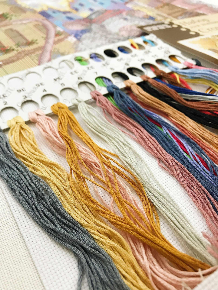 MP Studia counted cross-stitch set. This kit is stitched 18 count AIDA canvas. Cotton threads. Instruction in English, French, German and Russian. Monochrome chart.