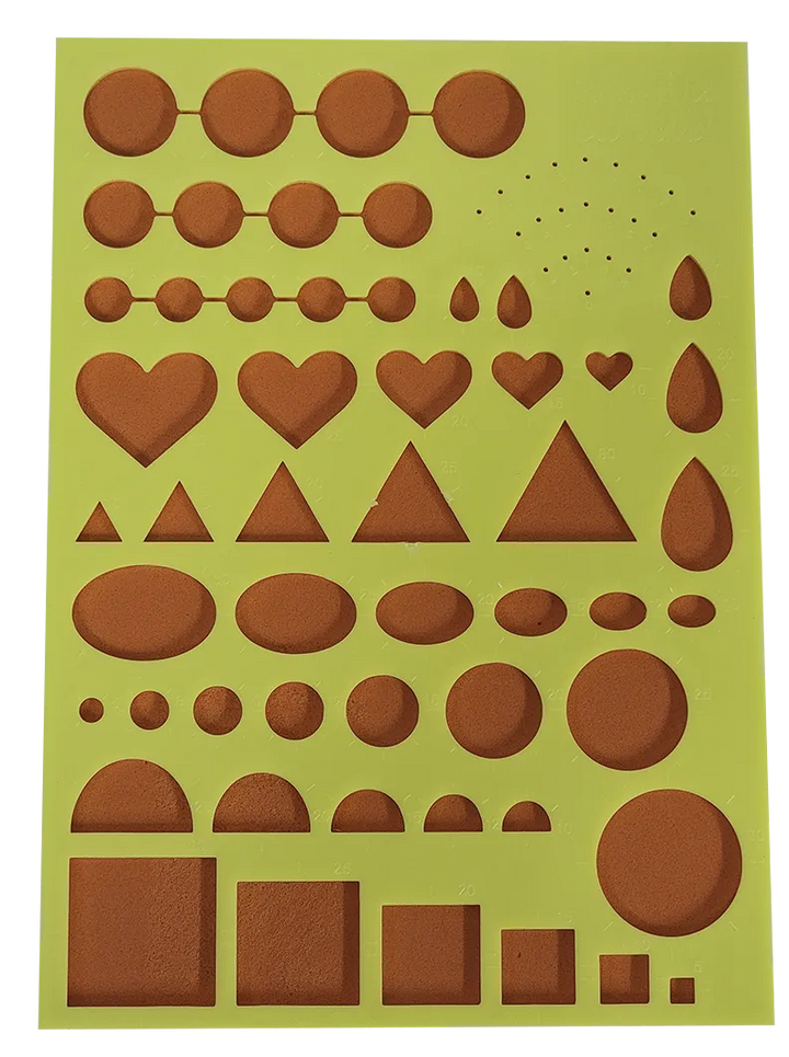 This product is a quilling template board designed for paper quilling enthusiasts. It features various shapes and sizes, including circles, hearts, triangles, teardrops, and squares, allowing for precise and consistent quilling designs. The cork backing provides a stable surface for creating tight coils and intricate patterns. Ideal for crafting decorative elements for cards, scrapbooks, and other paper art projects, this template board is a versatile tool for both beginners and experienced quillers.