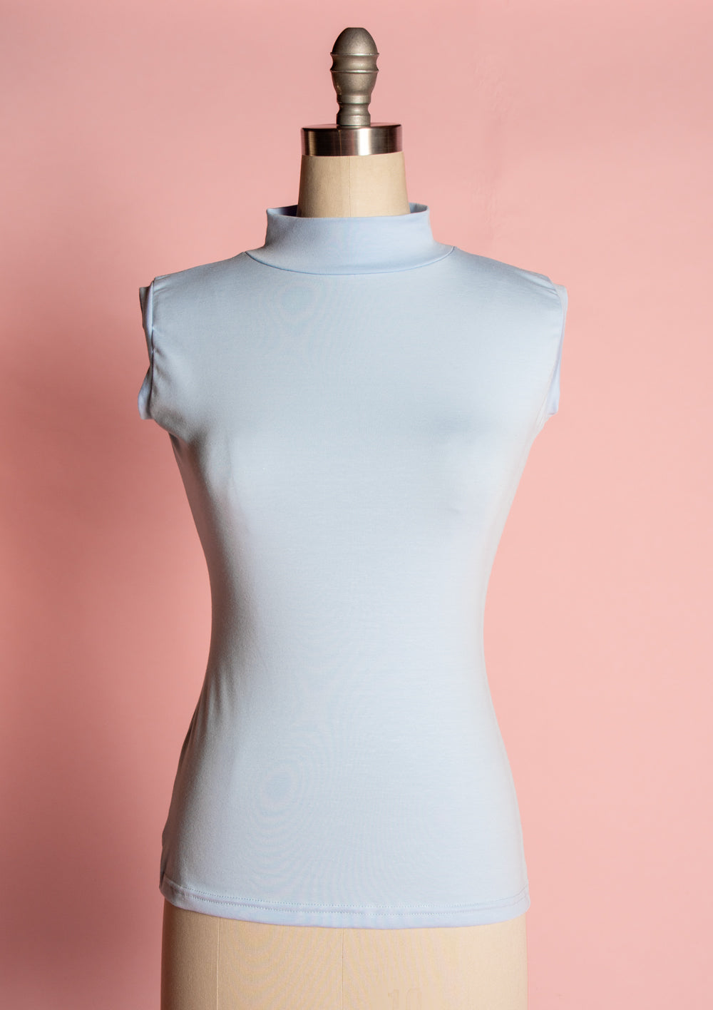 The Dee Dee mock neck top is the Denise Top's little sister. Same great fitting top, just without the sleeve!