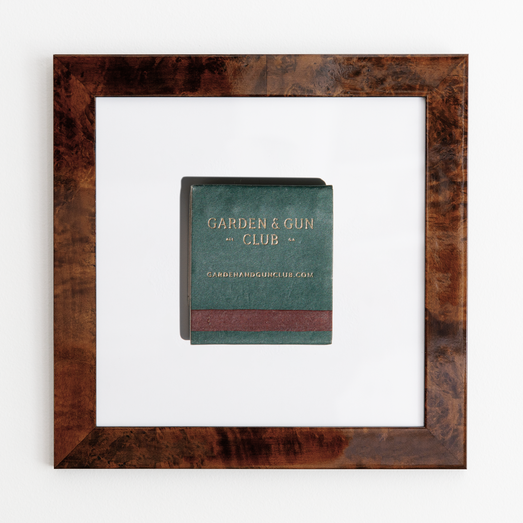 The Garden and Gun Club print showcases an iconic matchbook design.