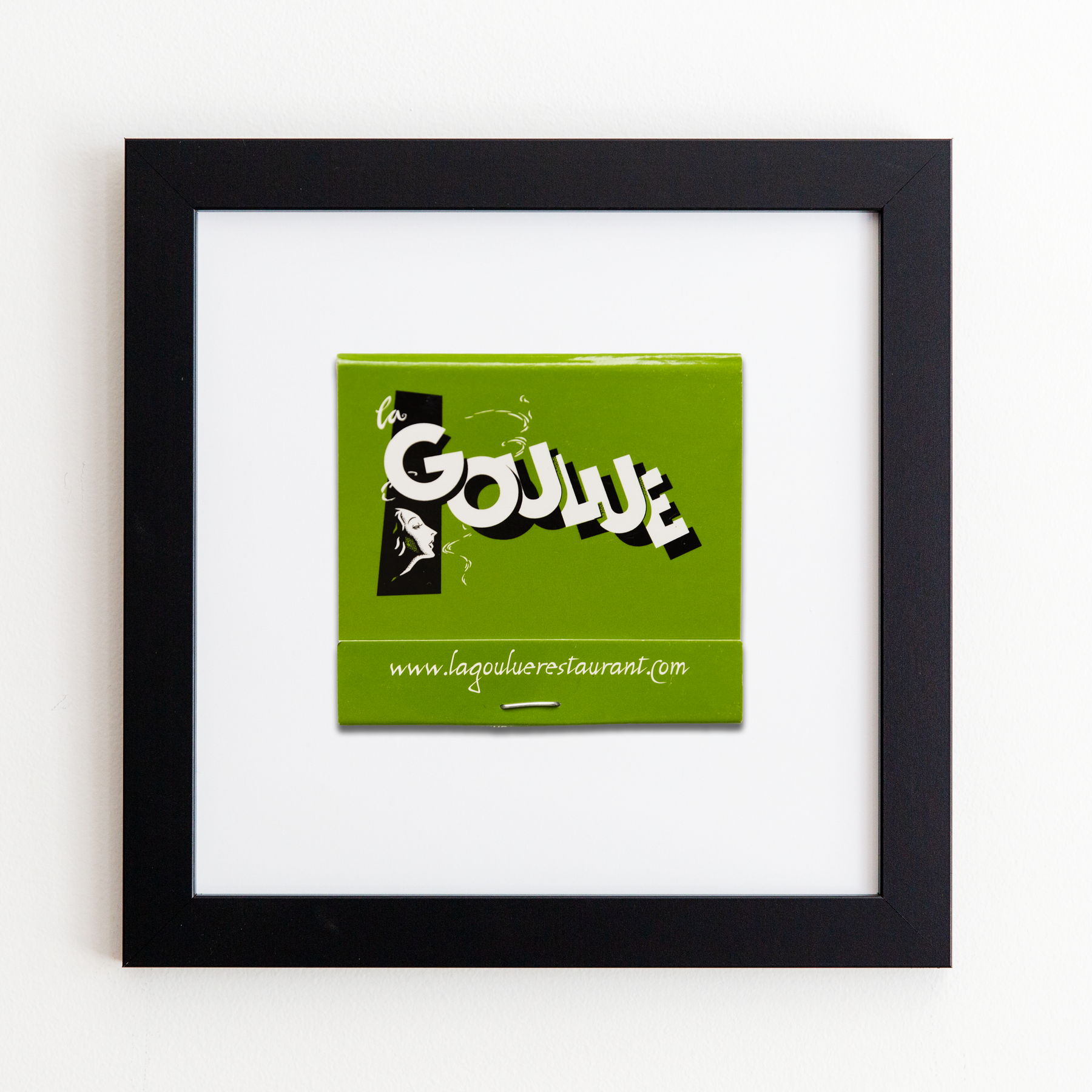 The La Goulue Restaurant print showcases an iconic matchbook design.