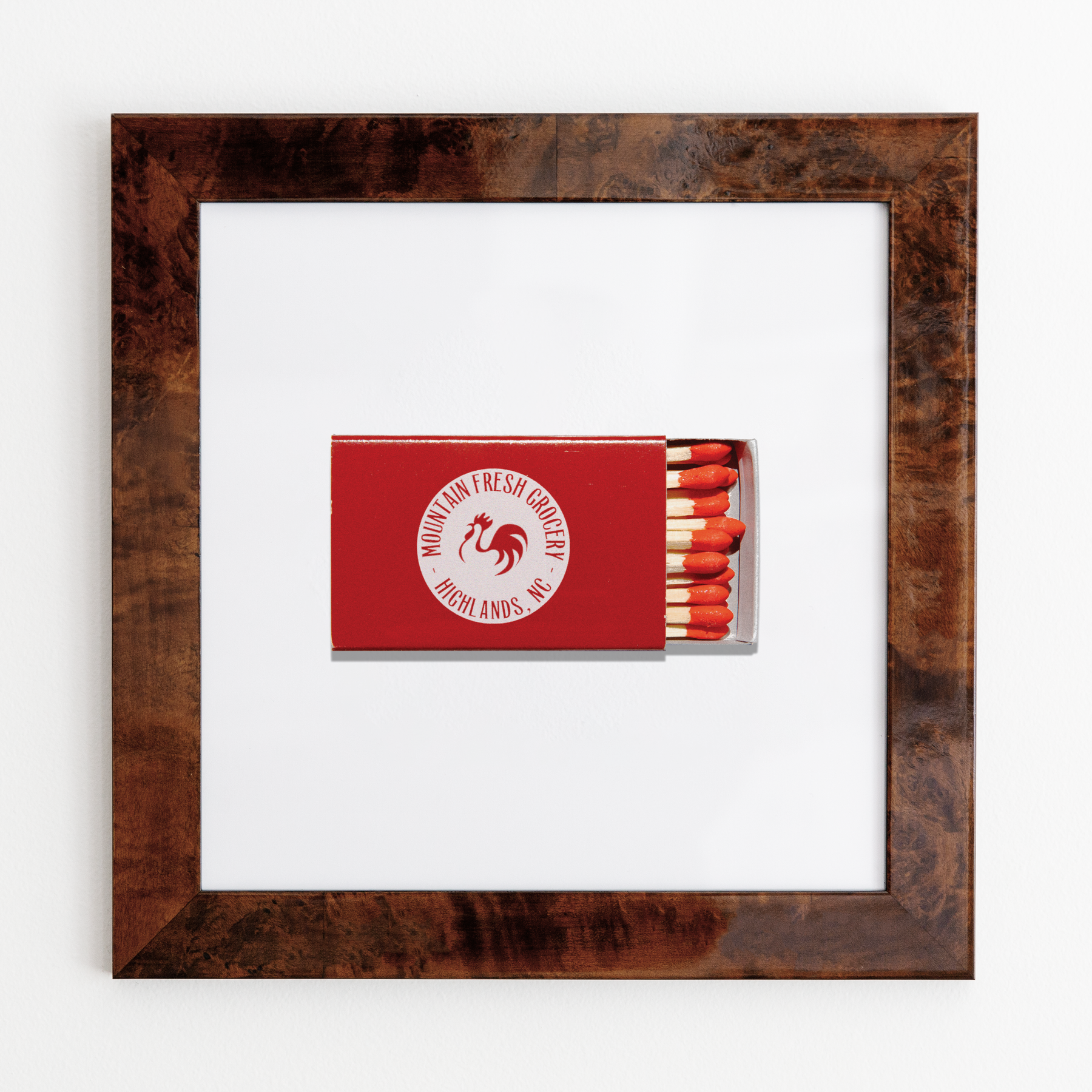 The Mountain Fresh Grocery print showcases an iconic matchbook design.