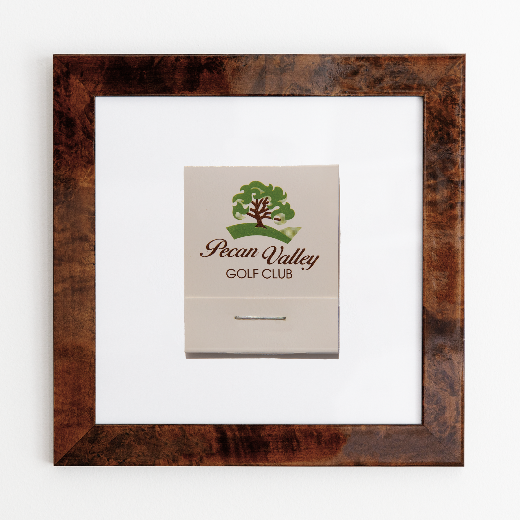 The Pecan Valley Golf Club print showcases an iconic matchbook design.