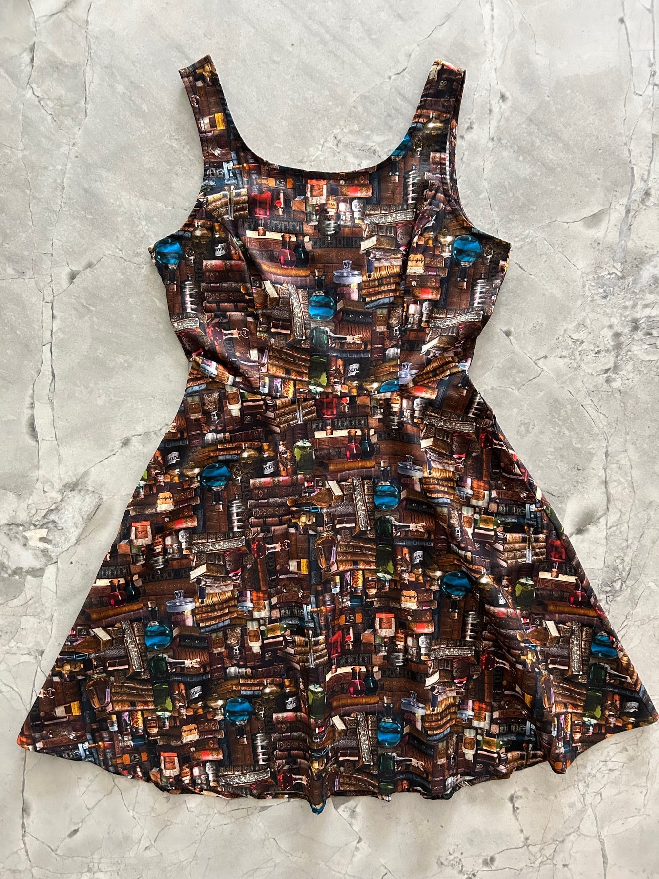 Fun, flirty, and totally retro: our skater dress is the perfect addition to your closet! Shown in our Spellbinding print, this vintage inspired dress features a scoop front and back, elasticized waist in the back for ease of wear, a flirty a-line skirt with hidden side pockets, and a back zippered closure.