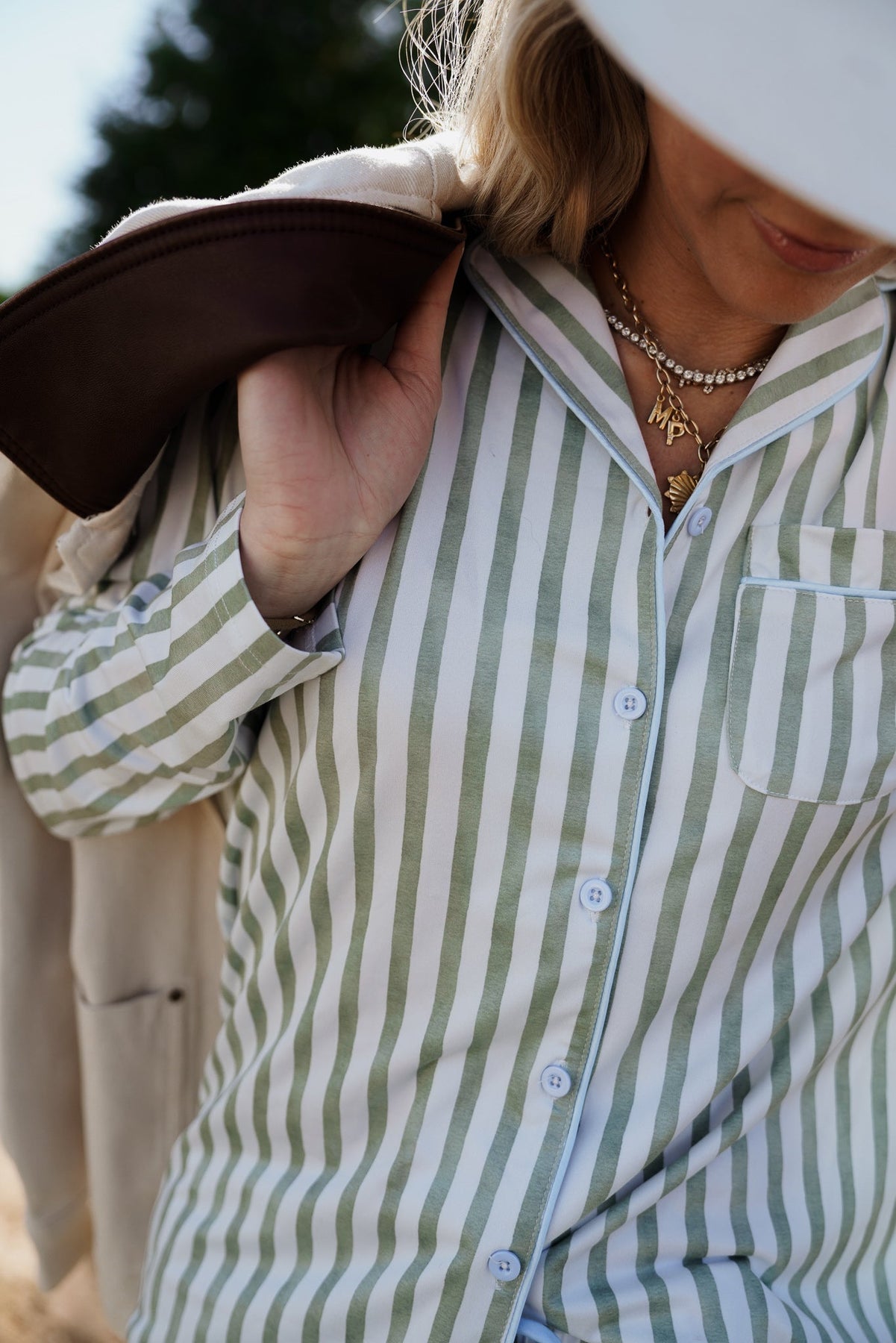 - Long sleeve sleep Top: Notched Collar, Front Button Closure, Long Sleeves
