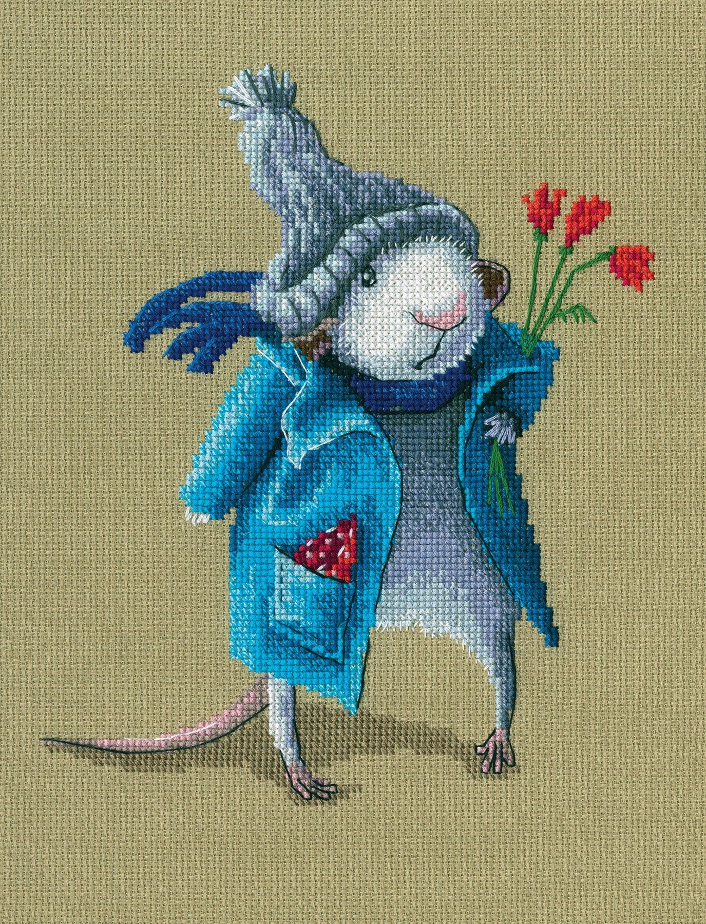 Kit contains: Canvas Aida 16, 100% cotton, colour:mustard, fabric Zweigart, chart, needle, instruction. Mouline DMC (22 colours). Dimensions 15.5*18.5 cm / 6.1*7.28 inches