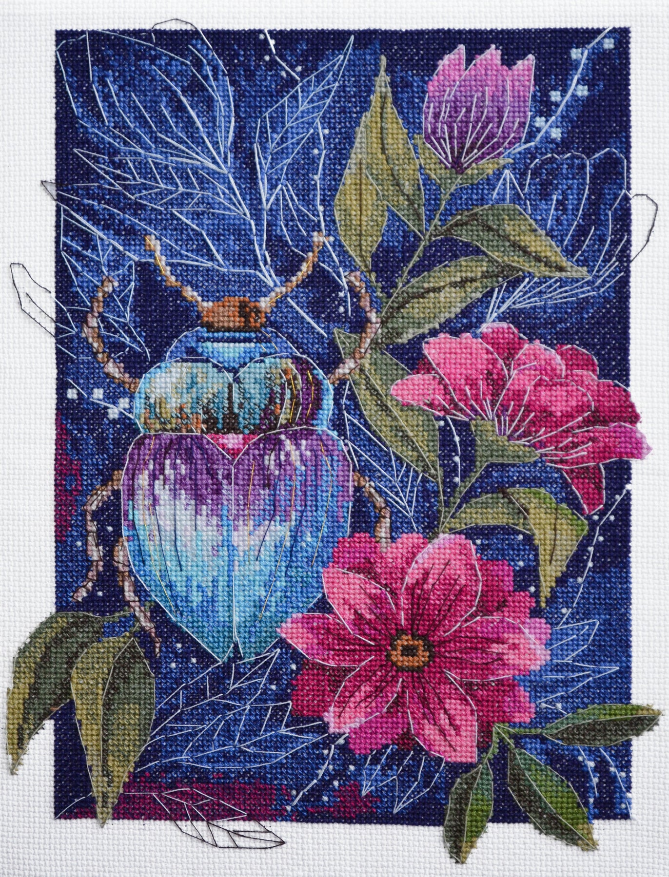 The set is completed with canvas 320*400 mm white color count 14, threads 105 m (of which decorative metallized thread golden color 6 m).