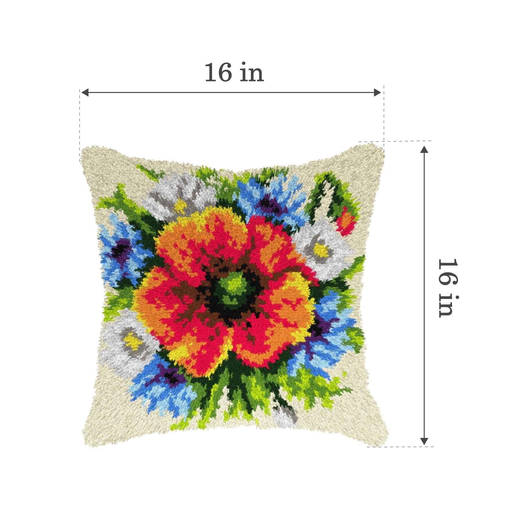 Kit contains: printed canvas Zweigart, 100% acrylic pre-cut yarn packs 15 colors, chart/instruction, latch-hook tool. Dimensions 40x40 cm/16x16 inches. Make your own fluffy, shaggy cushion with rustic, floral design. Only high quality materials inside - pattern perfectly printed on Zweigart canvas, chunky acrylic yarn in bundles for your comfort and convenience as well as latch hook tool.