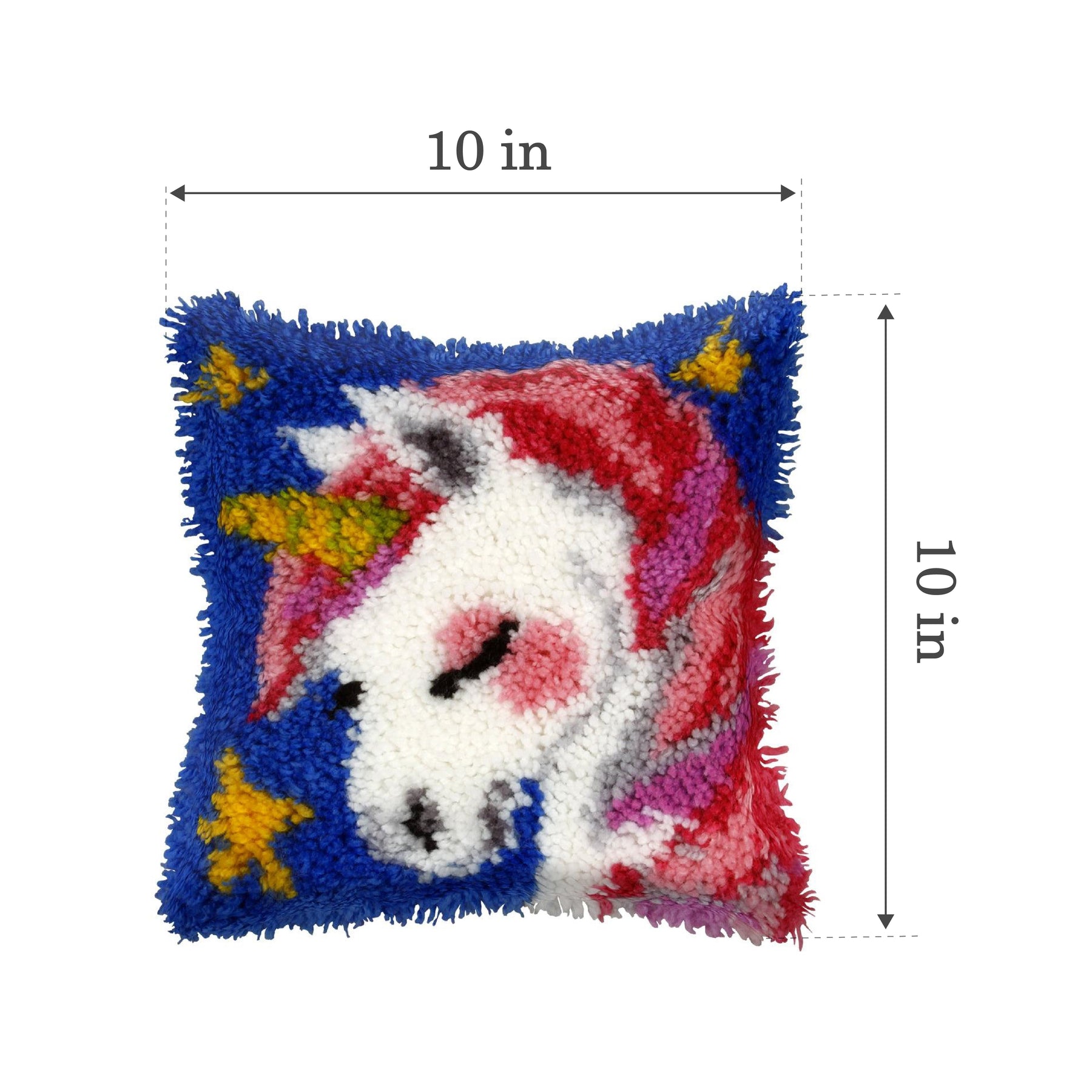 Kit contains: printed canvas Zweigart, 100% acrylic pre-cut yarn packs 6 colors, chart/instruction, latch-hook tool. Dimensions 25,5x25,5 cm/10x10 inches, 50% cotton/50%polyester fabric, 100% acrylic yarn, paper, metal/plastic. Make your own fluffy, shaggy mini - cushion with cute, unicorn design. Only high quality materials inside - pattern perfectly printed on Zweigart canvas, chunky acrylic yarn in bundles for your comfort and convenience as well as latch hook tool.