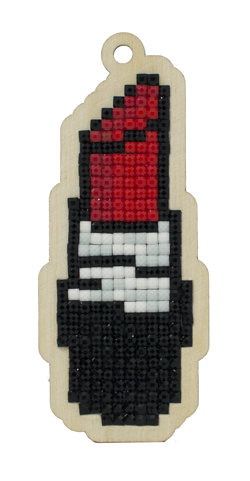 The kit contains: plywood base, double-sided adhesive, set of acrylic rhinestones in zip lock bags, pen, tray, support stand, magnet, silicone gel, instructions.