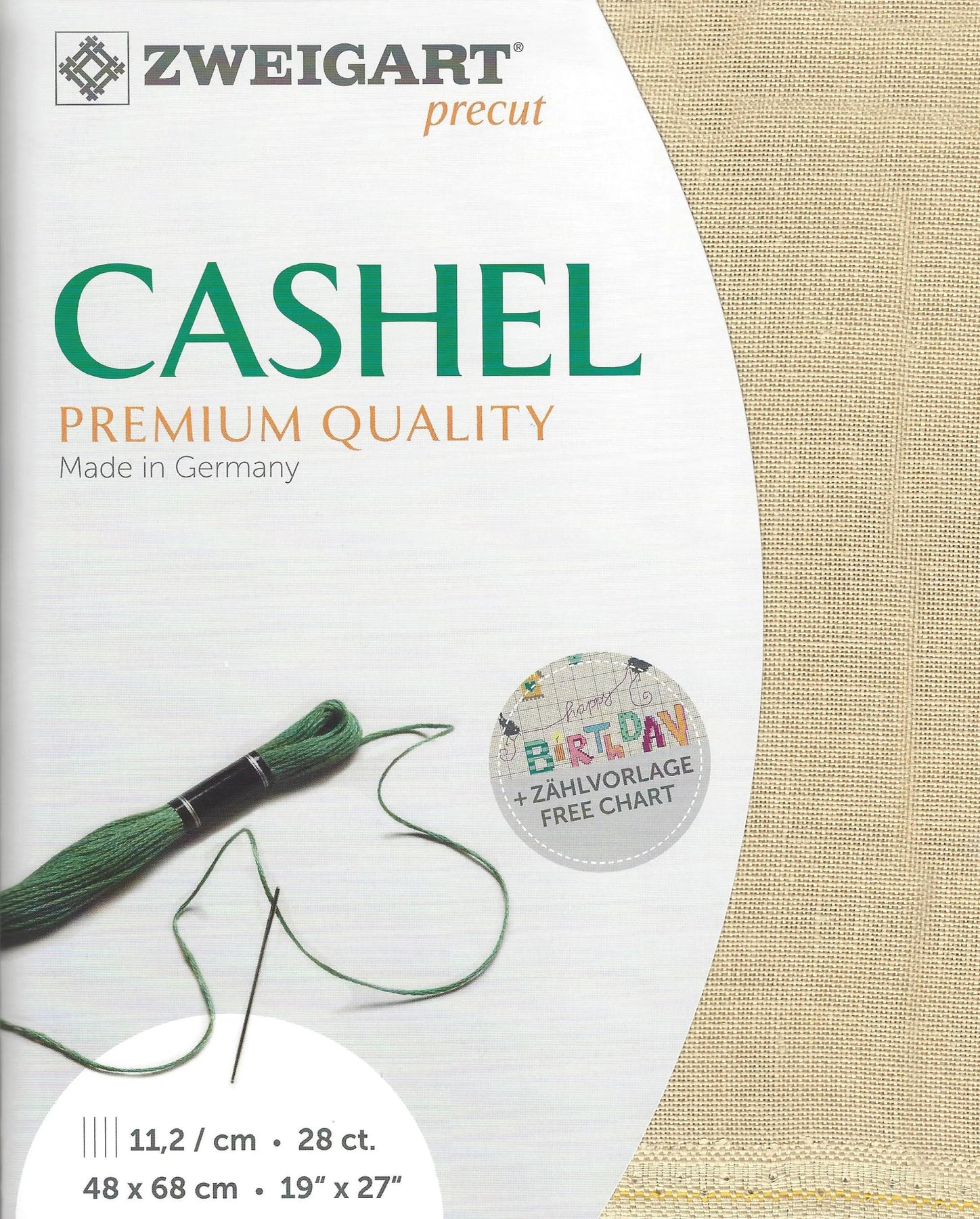 Zweigart Cashel Canvas 28 count, 100% Linen. Dimensions 48*68 cm/ 18.9*26.77 in