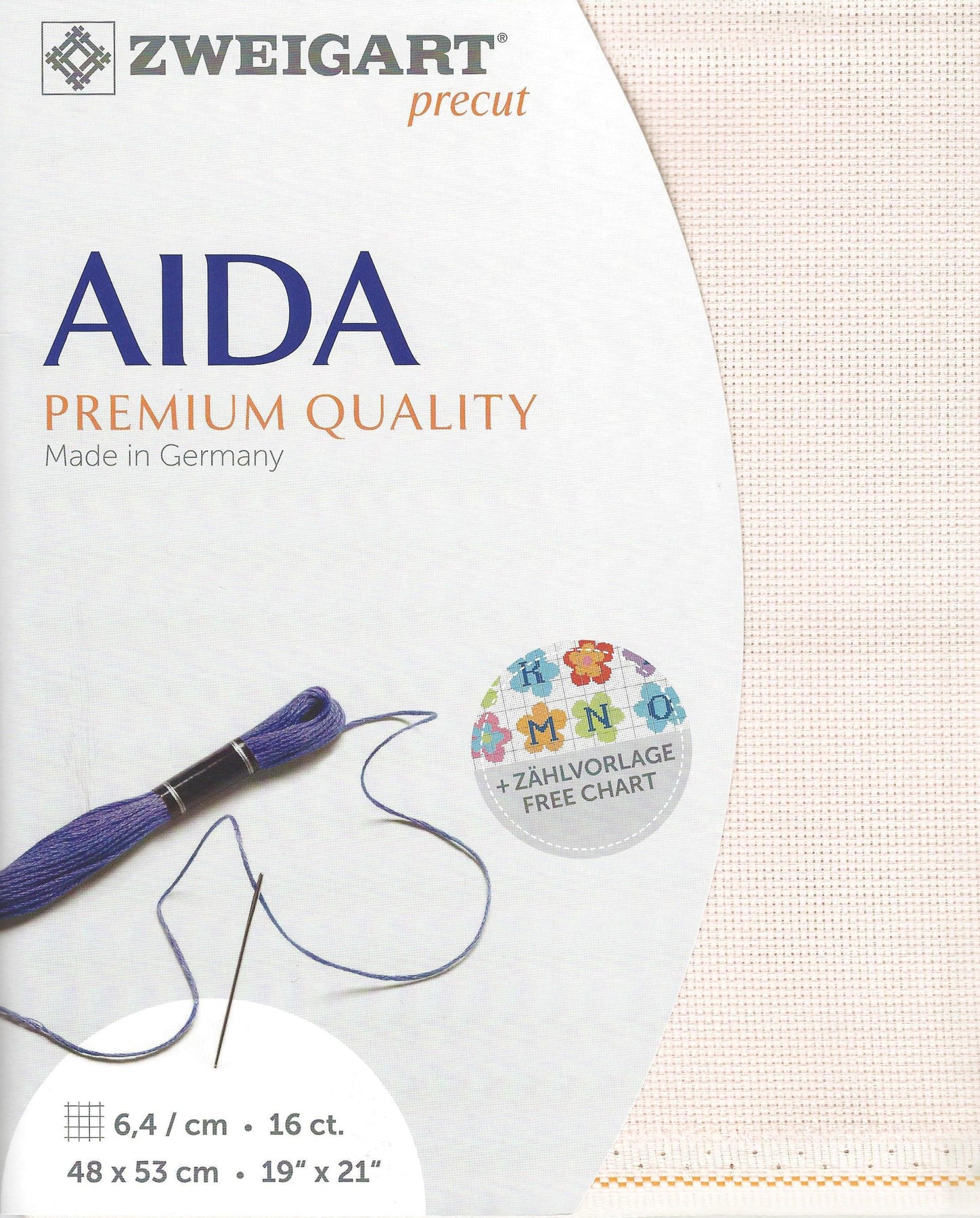 Zweigart AIDA Canvas 16 count, colored 100% Cotton. Dimensions 48*53 cm/ 18.9*20.87in