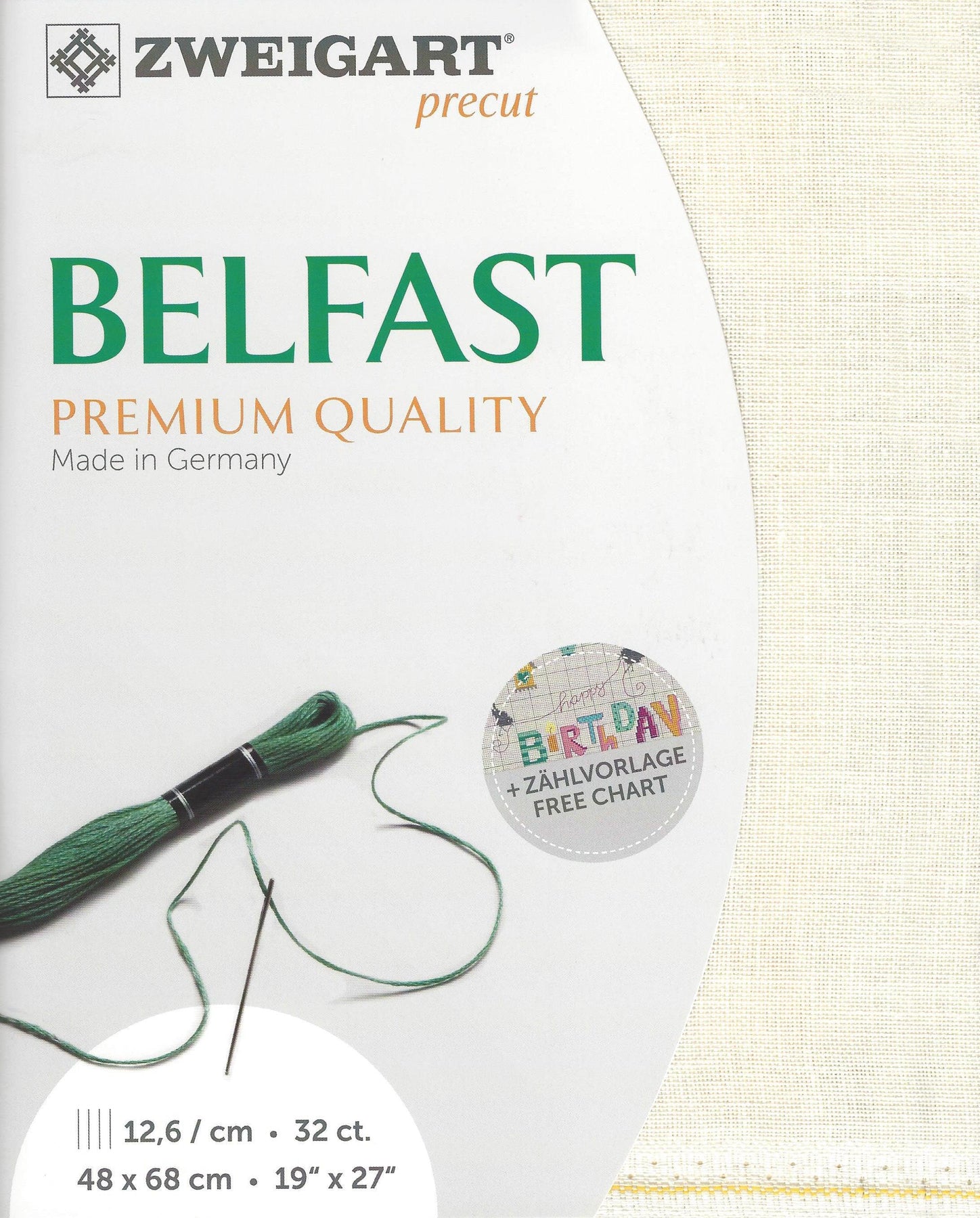 Zweigart Belfast Canvas 32 count, colored 100% Linen. Dimensions 48*68 cm/ 18.9*26.77 in