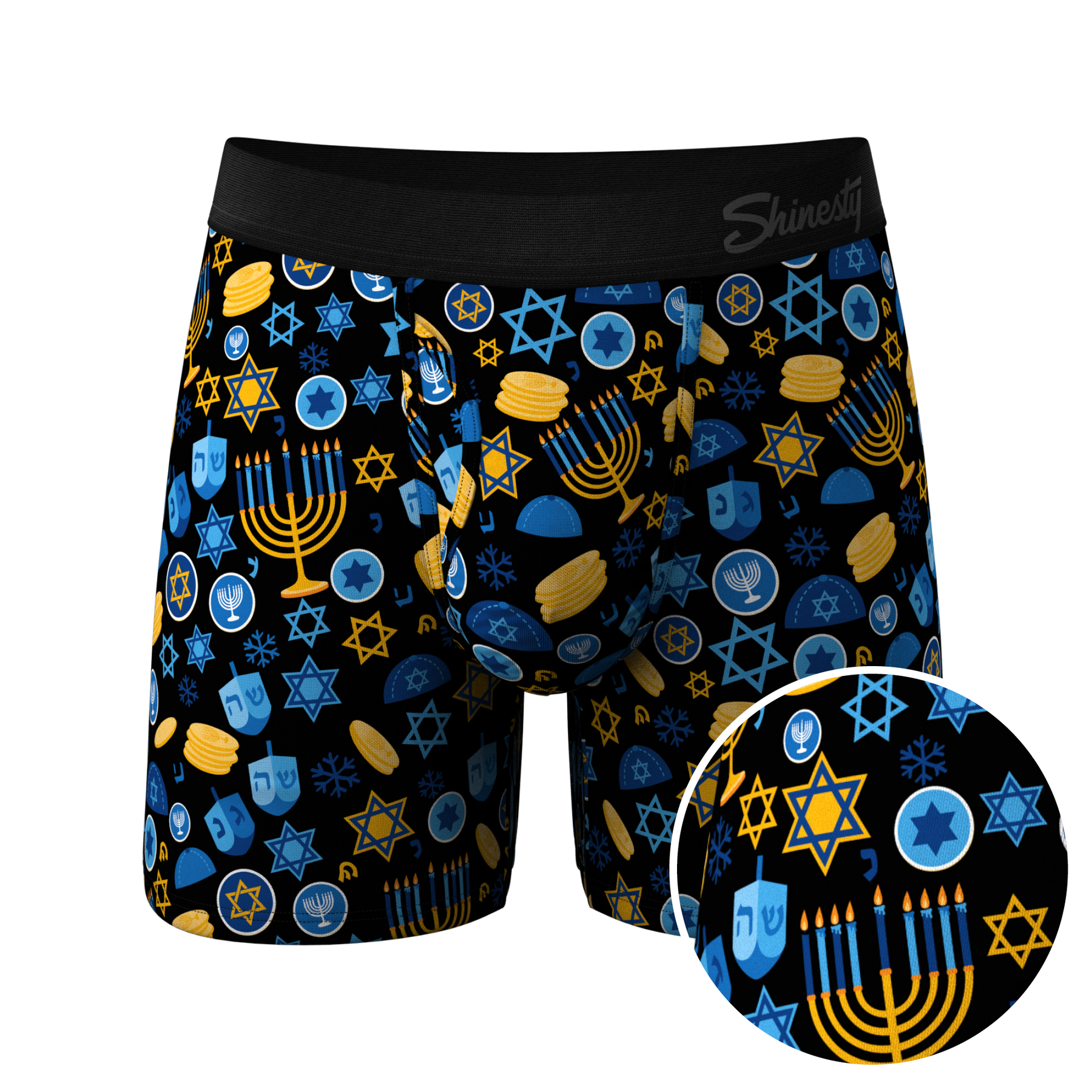Forget the not-so-silent nights. You've got at least 8 crazy nights coming your way when you wear this pair of Hanukkah themed Ball Hammock® pouch underwear with fly.