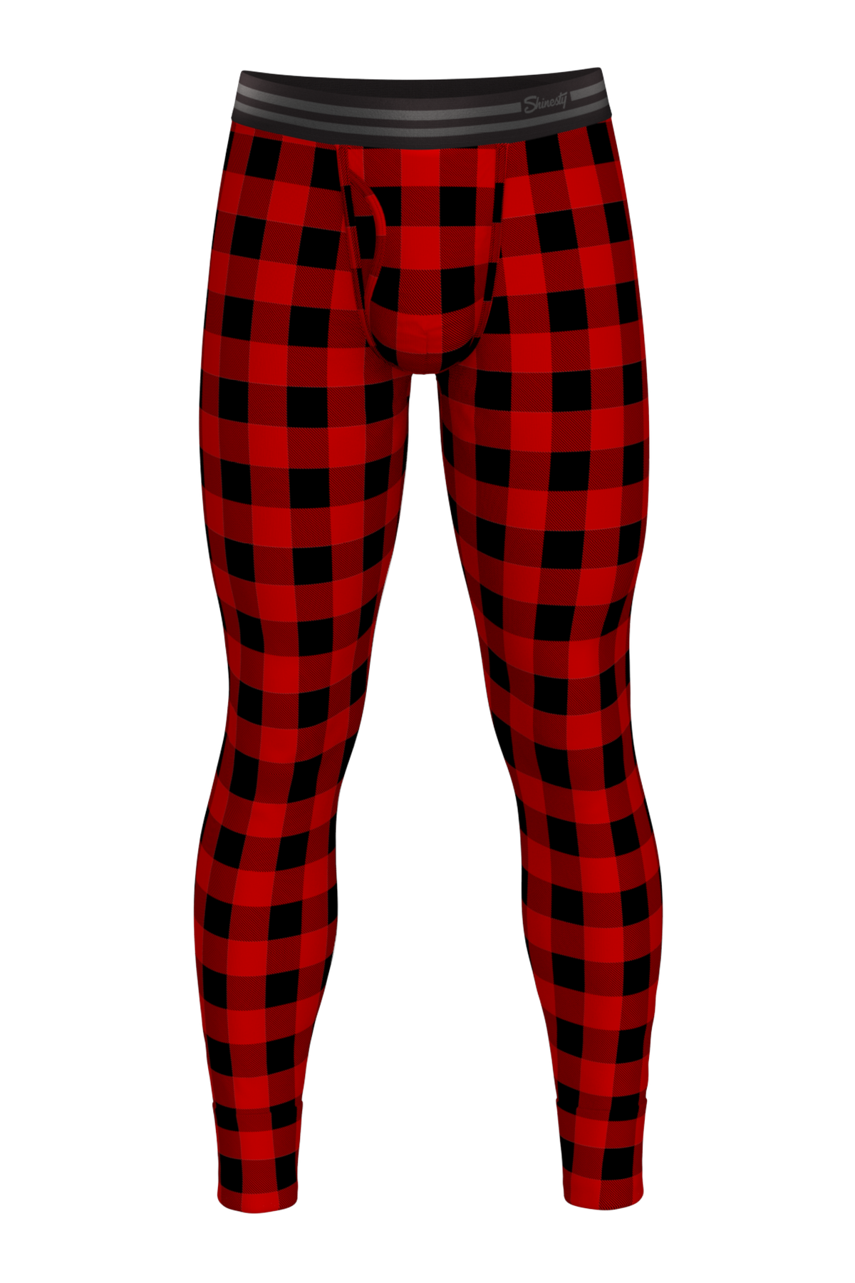 This pair of red and black buffalo check Ball Hammock long johns make me wanna get some dirt on my hands and go chop down a tree. I can feel myself wandering through those whispering pines with my fingies in the evergreen branches, just searching for the perfect tree to take home. I'll place that thing by the fire, make me a hot toddy and take off my pants to show off these buff check undies as I admire that beautiful piece of wood.