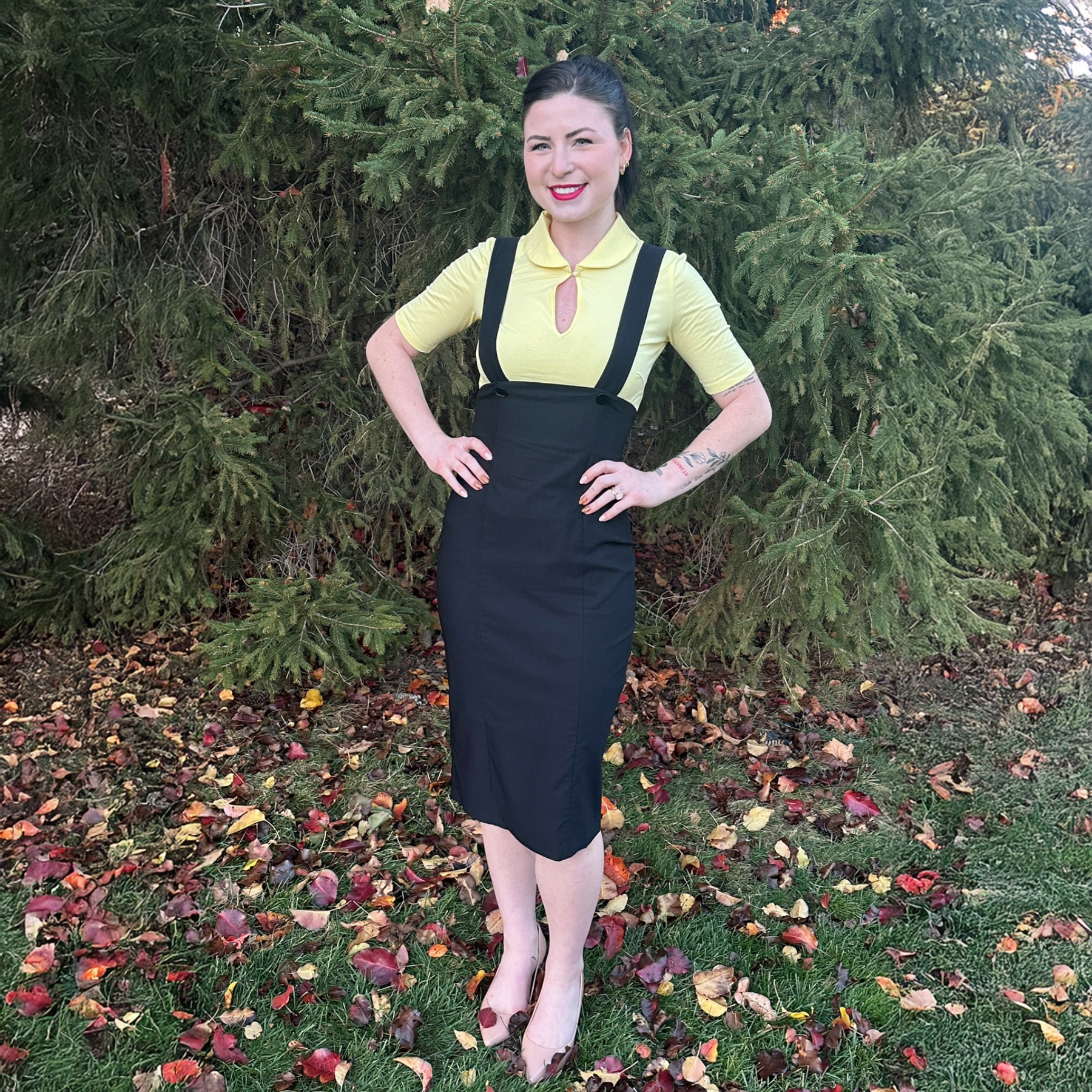 Jump start your winter wardrobe with this versatile pencil skirt. Separates are fabulous for those that want as much flexibility in their wardrobe as possible. This wiggle skirt can be dressed up or down and can be styled in the classic 1950's fashion we love! Or keep it modern with a contemporary top. You decide your fashion adventure! This super stretchy skirt has adjustable lengths on the straps and a back zip.