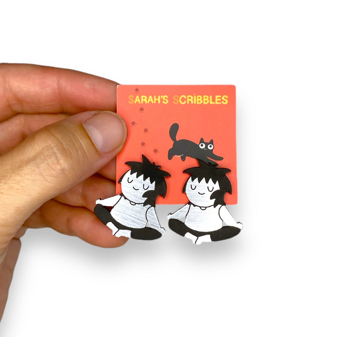 Feel centered with Sarah's Scribbles® Meditating Sarah Earrings. These are said to have a calming effect on all who purchase them. Wink.