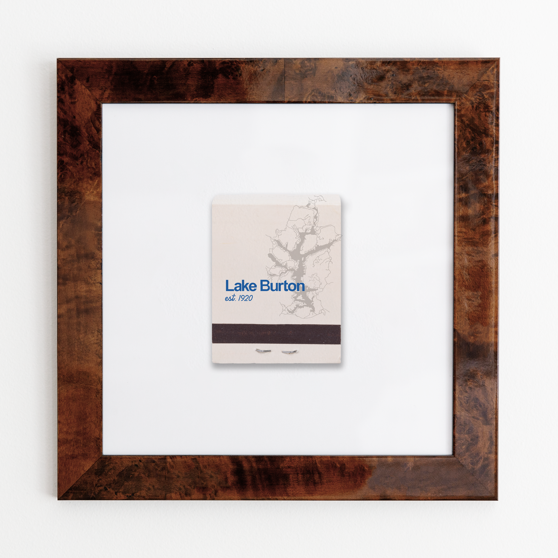 The Lake Burton print showcases an iconic matchbook design.