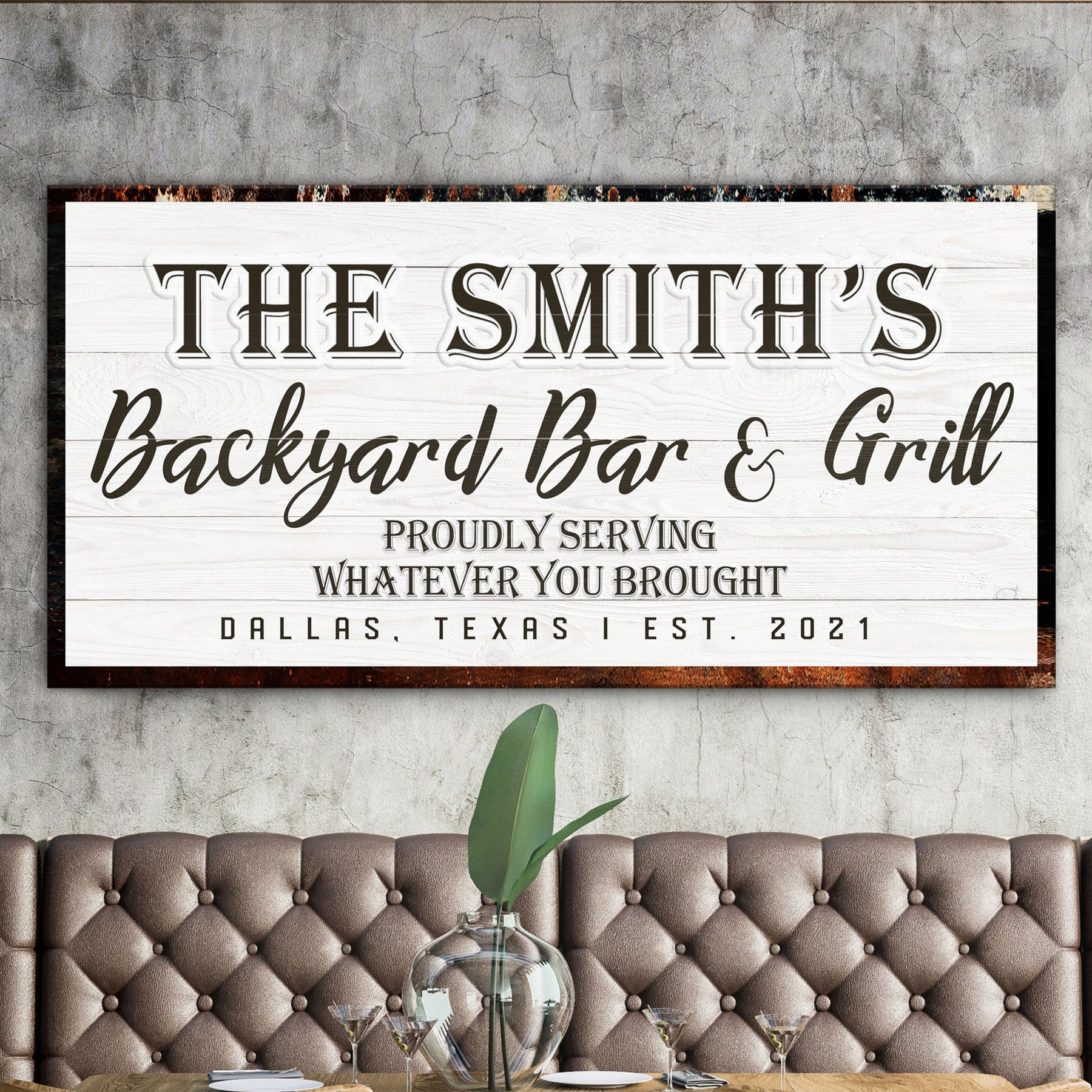 There is no better way to enjoy the outdoors when the days grow shorter and the nights become cooler than by cuddling up with a backyard bar & grill sign. Our backyard bar & grill canvas print is the ideal complement to any outside space, whether to enjoy a bottle of wine with friends or prepare a delectable dinner.