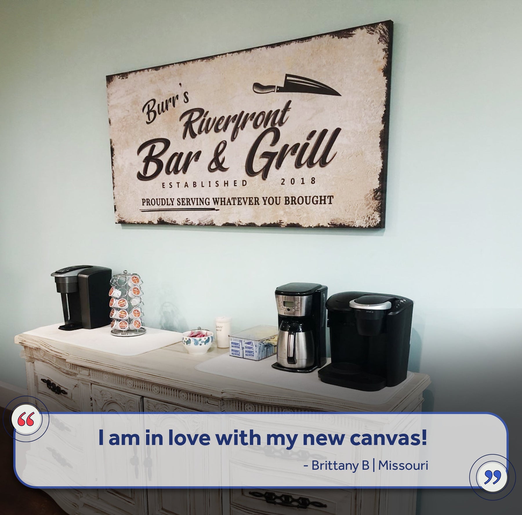 There is no better way to enjoy the outdoors when the days grow shorter and the nights become cooler than by cuddling up with a backyard bar & grill sign. Our backyard bar & grill canvas print is the ideal complement to any outside space, whether to enjoy a bottle of wine with friends or prepare a delectable dinner.