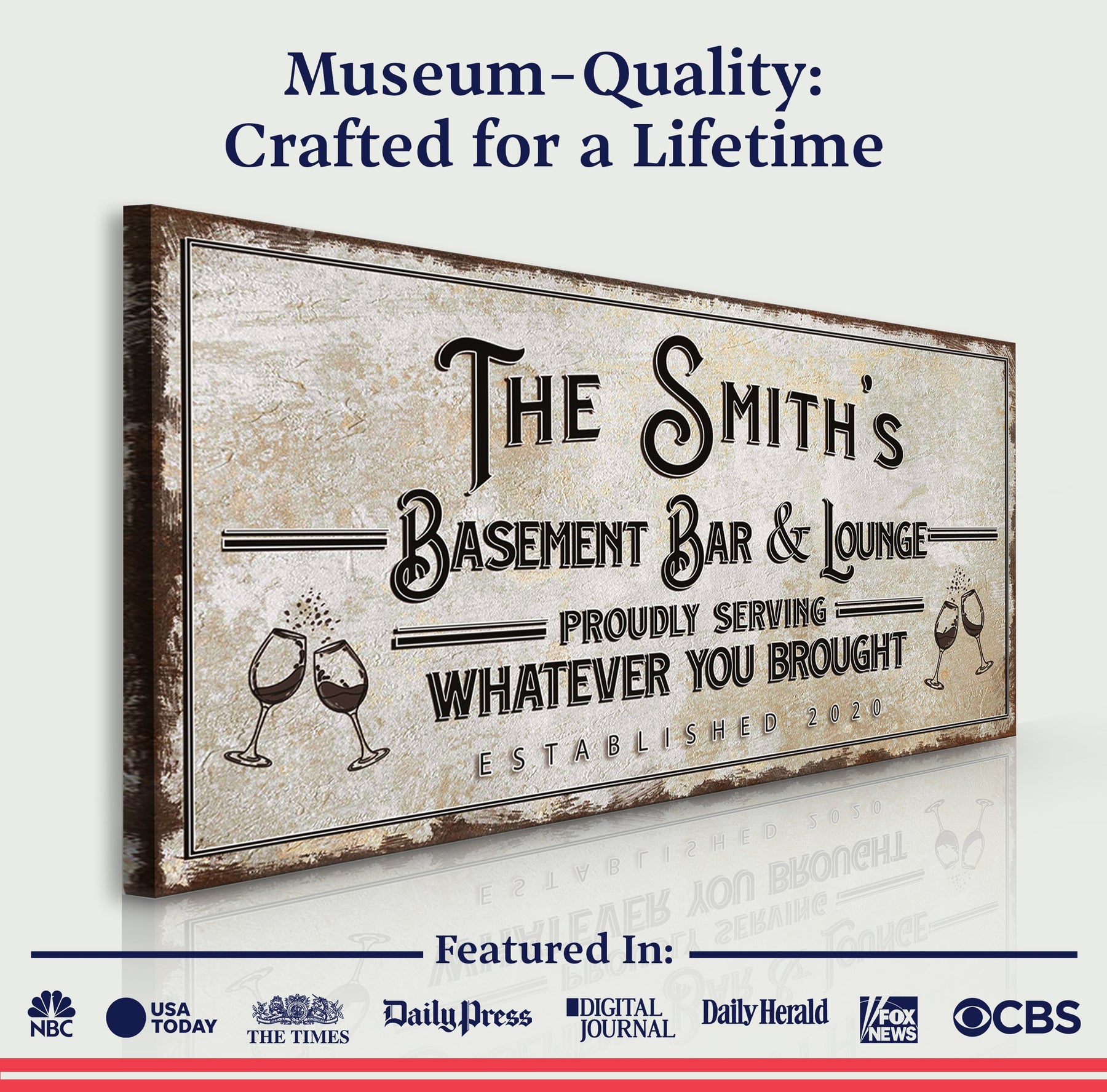 Your family name, elegantly inscribed alongside the establishment date, becomes the prologue of countless nights filled with laughter, clinking glasses, and cherished company. This sign is not just a piece of decor...