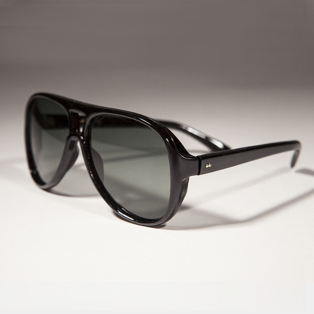Extremely rare find in this bold and sturdy acetate Aviator style. Frame cut and double rivets on temple make you know that these were made in the good old days with attention to design and details. Fitted with ground and polished optical glass lenses. What a great vintage aviator! One of our best finds!