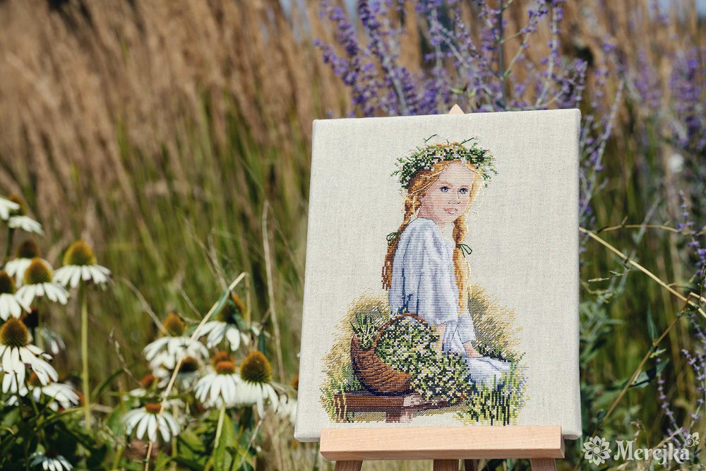 Kit contains: Canvas Zweigart Lugana, DMC threads 28 colors, John James needles. The schema has colour symbols. There are two versions of schema with and without backstitches in each kit. Dimension 20x28 cm / 7,87x11,02 inches