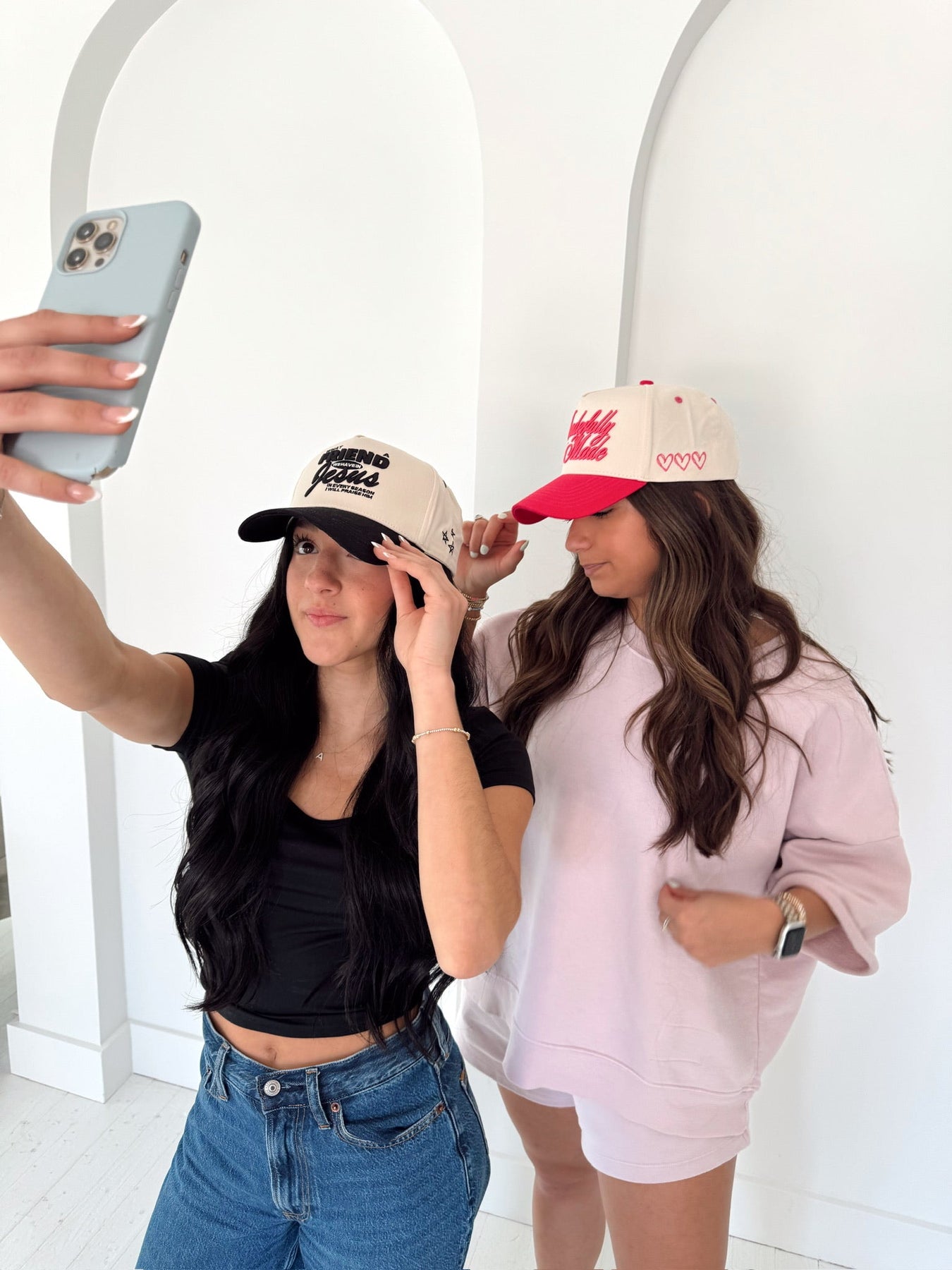 • Vintage black trucker hat with adjustable snapback & side embroidery