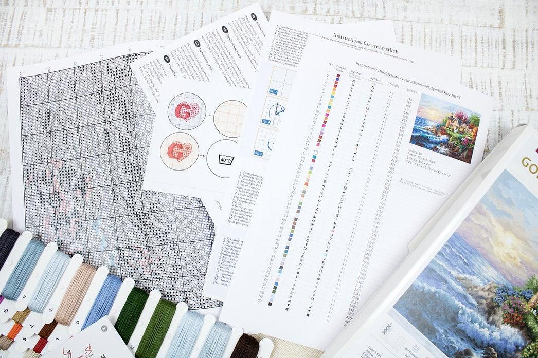 Magnificent ocean with sunset and beacon on the mountain and beautiful flowers. This kit will be perfect for marine lovers and is based on Nicky Boehme illustration. Kit is not printed cross stitch. You will get blank high quality Zweigart canvas and threads on bobbins.
