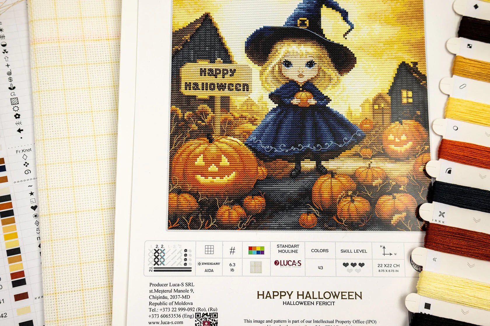 Kit contains: Canvas Zweigart Aida 16 squared , Thread Luca-S(43 colours),