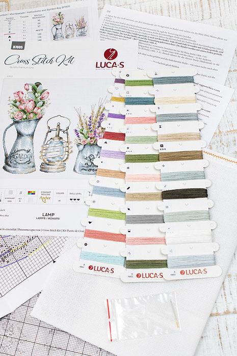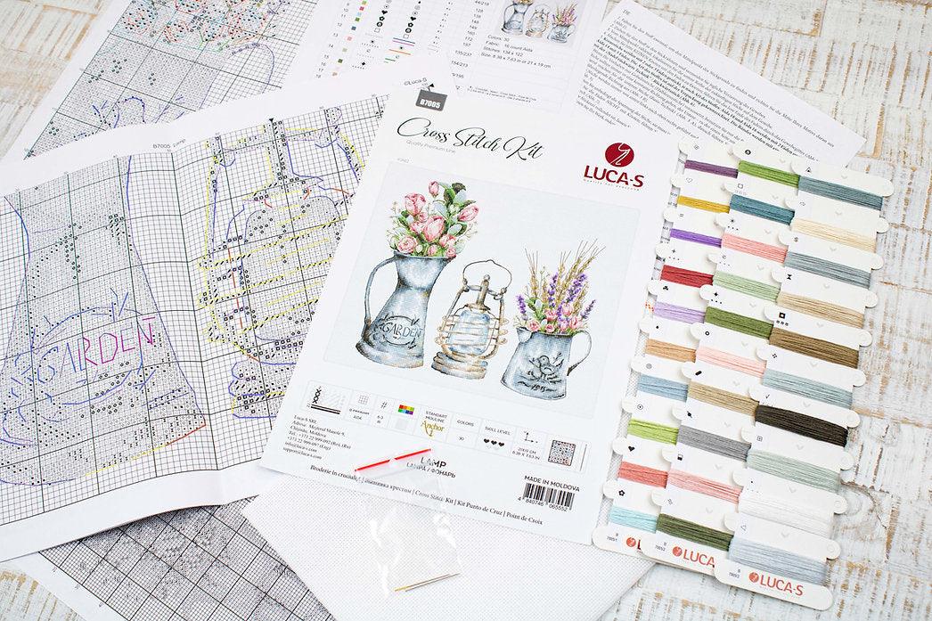 Kit contains:canvas(Aida16/100/101 Zweigart), Luca-S(30 colours), needle and instruction. Dimensions 21*19cm / 8.27*7.48 in.
