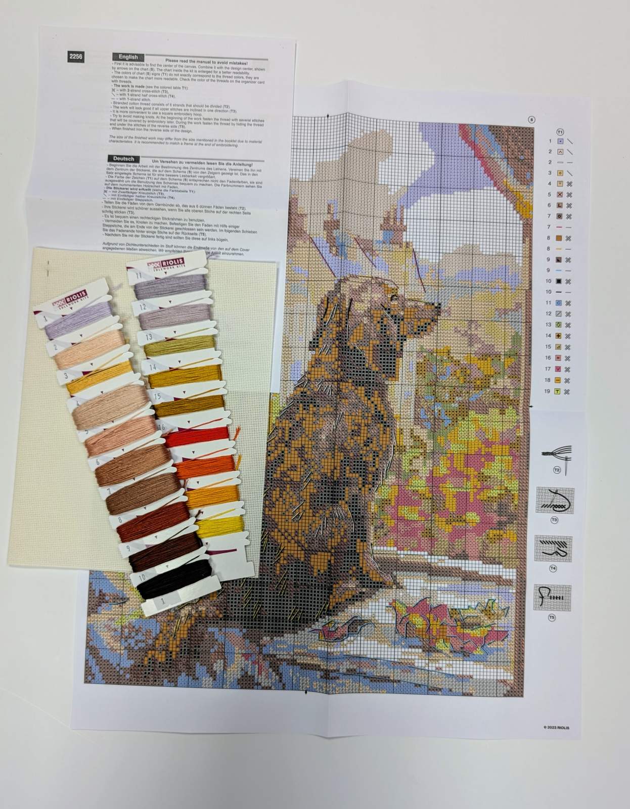 Kit contains: Canvas Zweigart 18ct. beige AIDA, treads: Anchor stranded cotton 19 colors. Instruction, color chart, needle 1 type. Dimensions 18*24cm/7" x 9½"inches.
