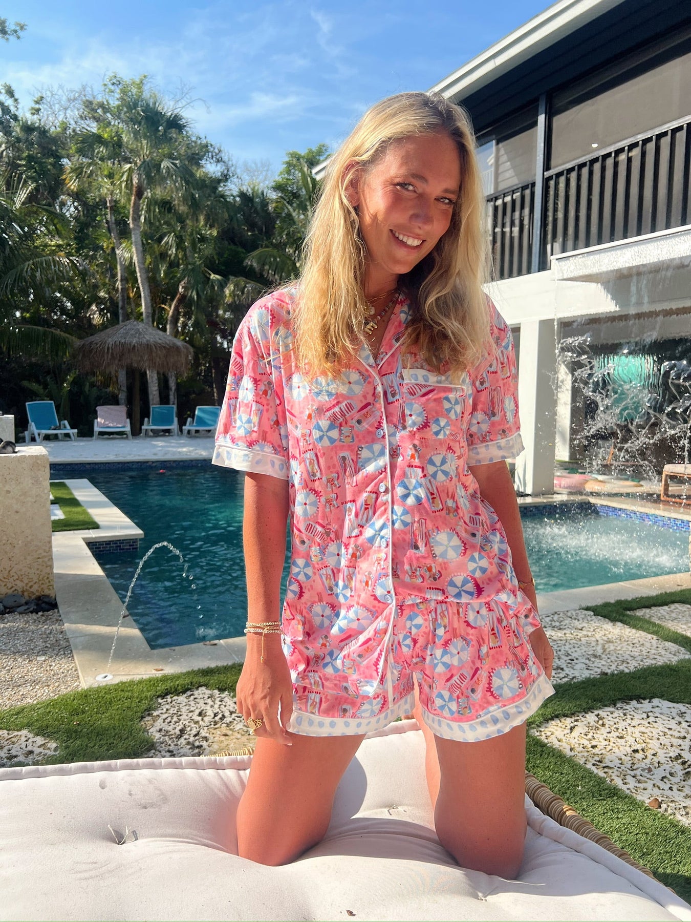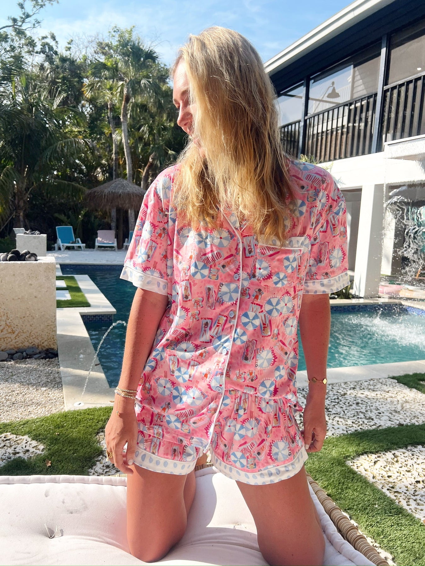 - Pink and periwinkle beach artwork - perfect for your spring + summer loungewear!