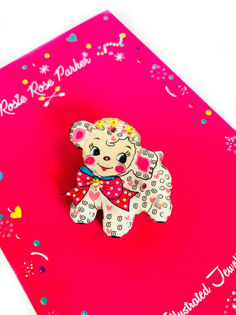 Introducing Harry the Little Lamb Brooch - your new favorite accessory for Spring! With a cute and happy design, this collectible brooch features certified woods, a stainless steel back, and pastel colors. Hand-illustrated and resin-cured, it's the perfect Easter gift for all Rosie Parker fans!