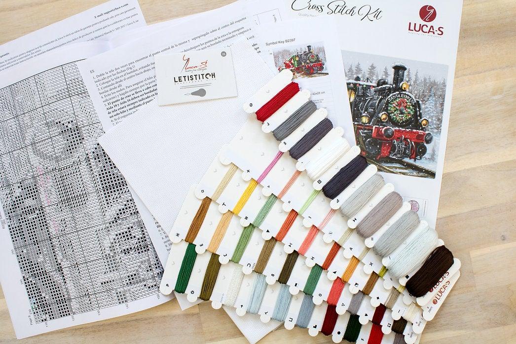 Fun cross stitch design with Santa Claus and a train full of Gifts. üéÅ This Christmas cross stitch pattern is based on famous artist Richard Macneil art. Beautiful winter landscape in the background. Get prepared for Christmas in advance and prepare this project early.¬†