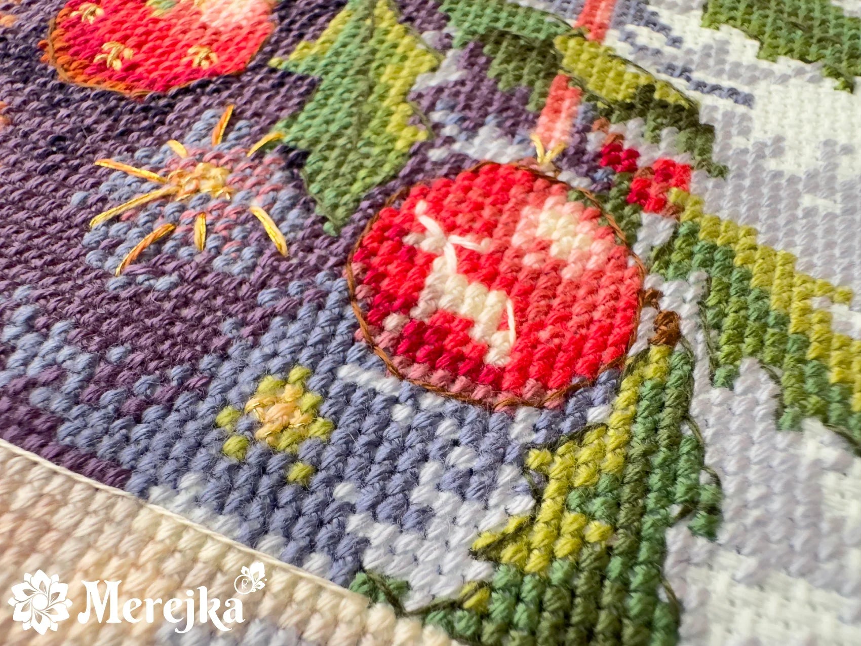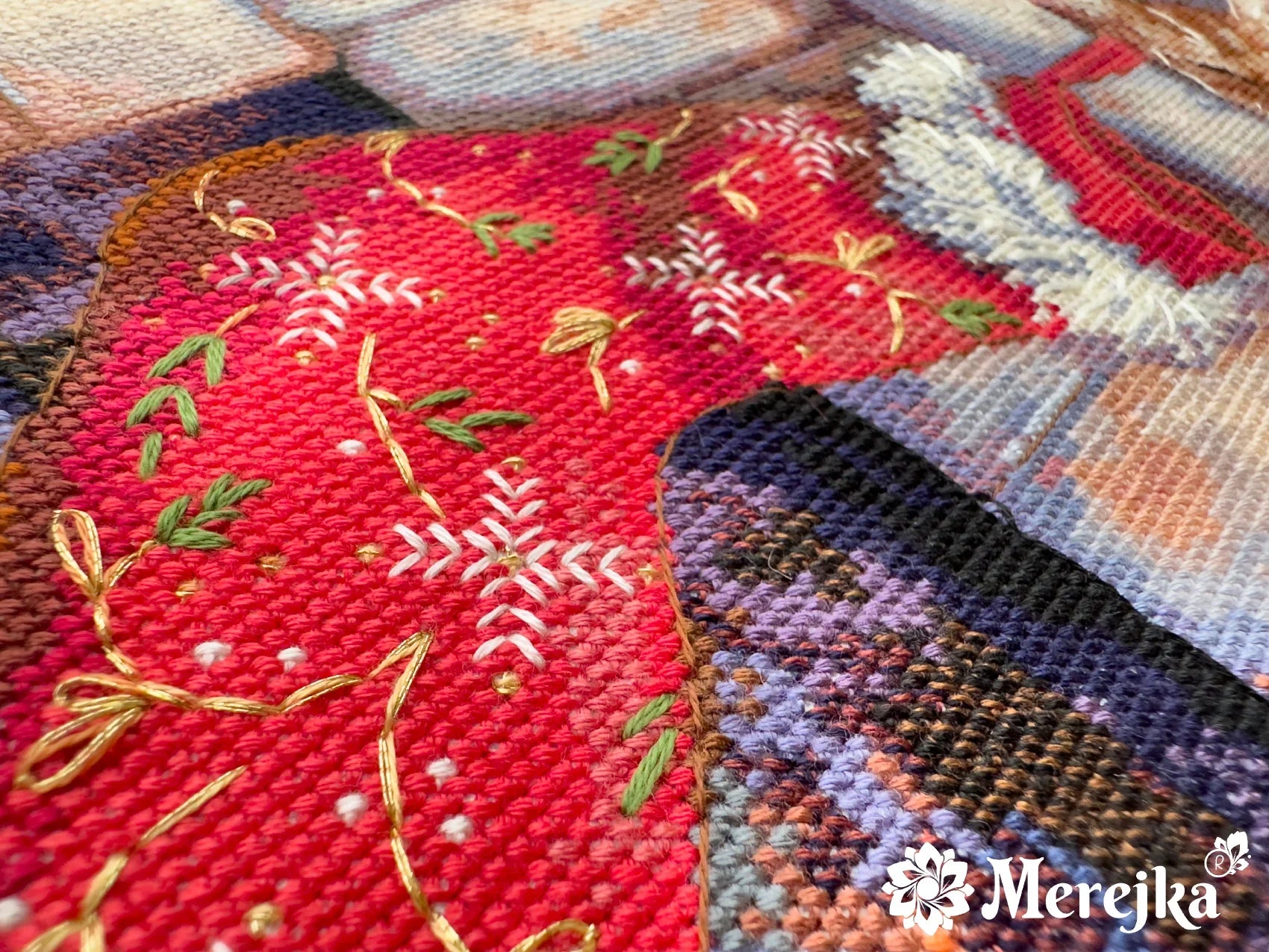 Kit contains: Canvas Zweigart Aida 16, ice-blue, DMC threads 42 colors, John James needles. The schema has colour symbols. There are two versions of schema with and without backstitches in each kit. Dimensions 30x39,5 cm / 11,81x15,55 inches