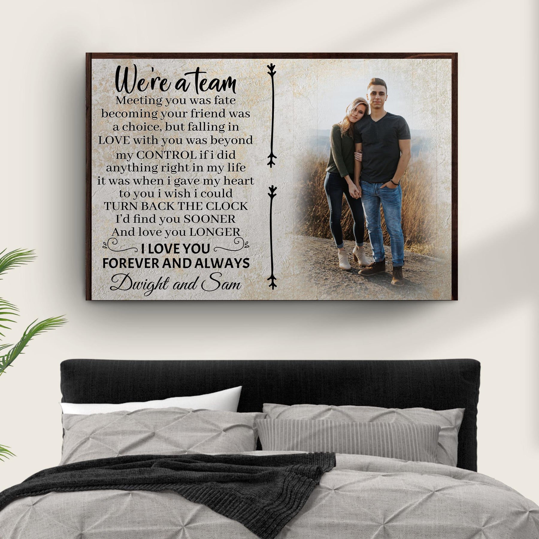 We're We're A Team Couple Sign is the perfect gift for you and your partner! This sign makes a great housewarming gift, wedding gift, anniversary gift, Christmas gift, or Valentine's Day gift. It can be used in any room of the house or outside in your yard.