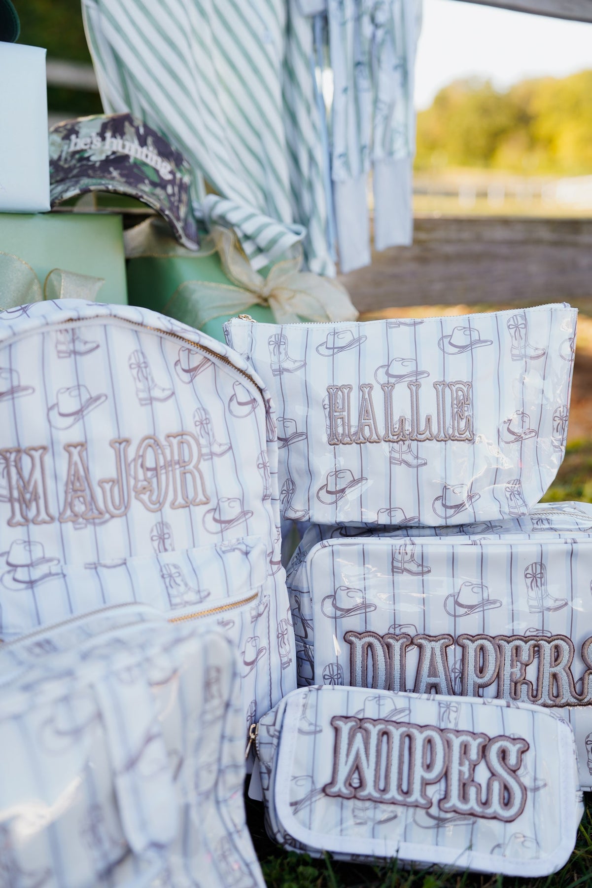 - Pair it with our matching diapers xl pouch or customizable clear coat bag!