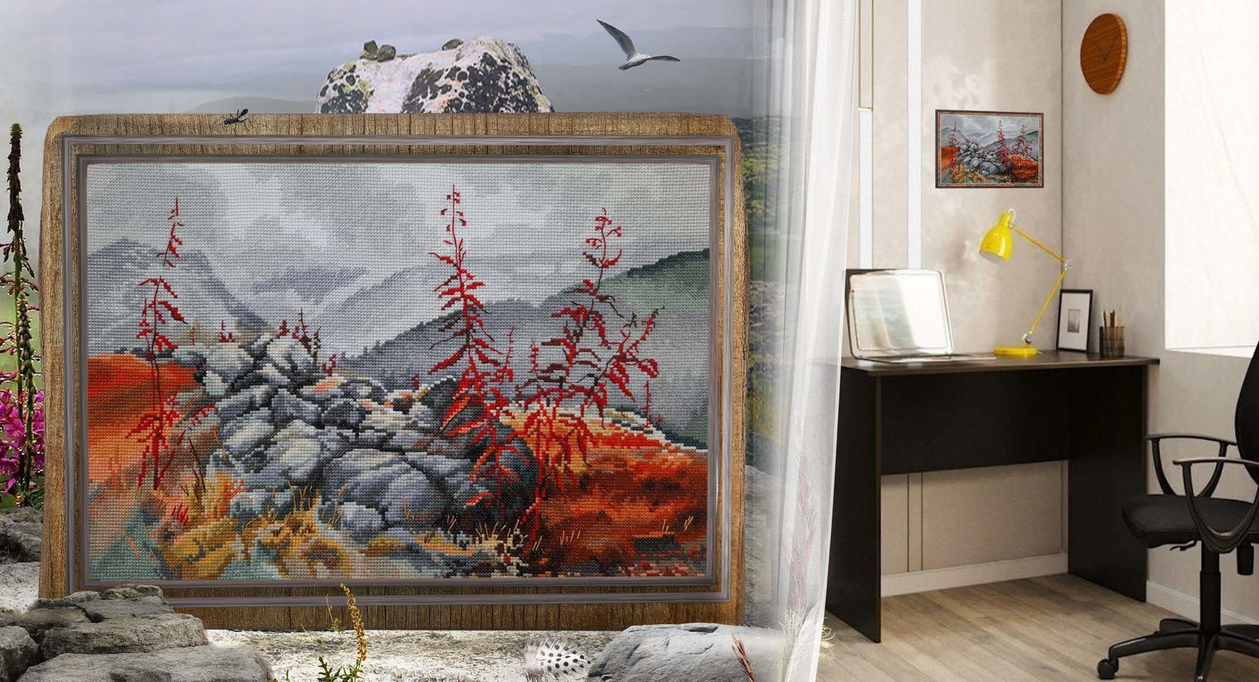 Kit contains: Canvas Aida 14, 100% cotton, colour:white,fabric Zweigart, chart, needle, instruction. Dimensions 36*24,5 cm / 14,17*9,65 in